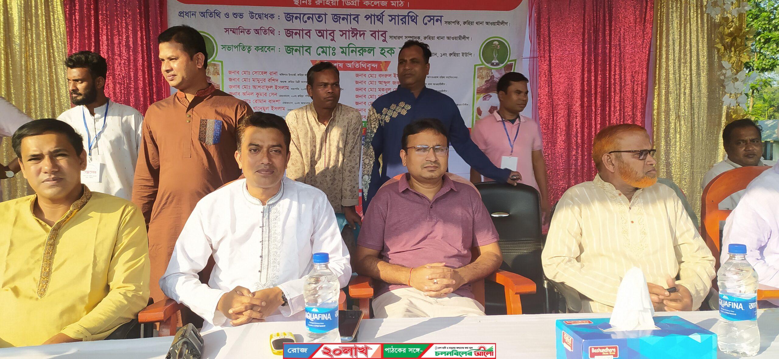 ইউনিয়ন আওয়ামী লীগের সভাপতি ও ইউনিয়ন পরিষদ চেয়ারম্যান মনিরুল হক বাবুর সভাপতিত্বে প্রধান অতিথি হিসেবে রুহিয়া থানা  ফুটবল টুর্নামেন্টের শুভ উদ্বোধন করেন,  রুহিয়া থানা আওয়ামীলীগ সভাপতি পার্থ সারথি সেন, সাধারণ সম্পাদক আবু সাঈদ বাবু, রুহিয়া থানার অফিসার ইনচার্জ সোহেল রানা, সহ-সভাপতি আব্দুল জব্বার মাষ্টার ,যুগ্ম সাধারণ সম্পাদক উপাধ্যক্ষ মজিবর রহমান, সহ দপ্তর সম্পাদক গণেশ চন্দ্র সেন, রুহিয়া পশ্চিম ইউনিয়ন আওয়ামী লীগের সাধারণ সম্পাদক নুর ইসলাম নুরু, ইউনিয়ন আওয়ামী লীগের সাধারণ সম্পাদক দুলাল রব্বানী,উসমান গনি প্রমুখ।