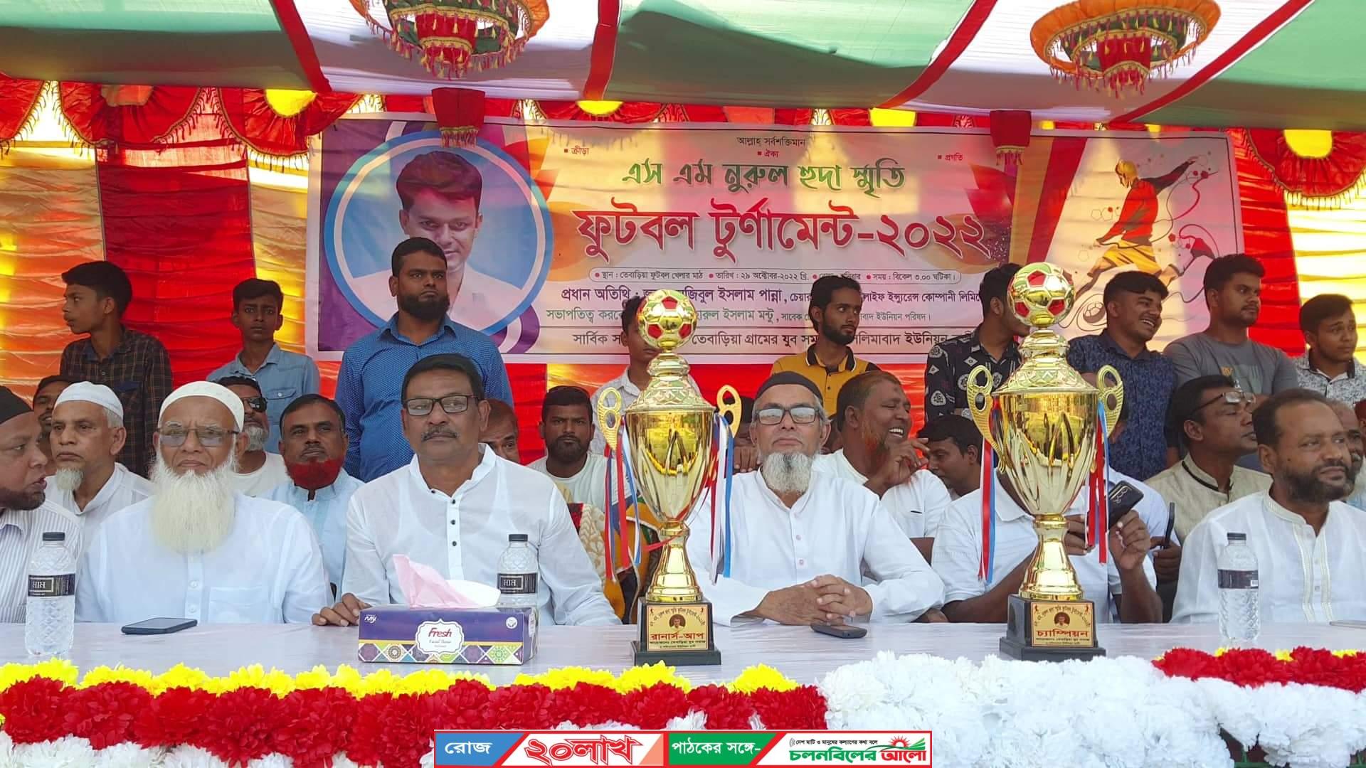 টাঙ্গাইলের নাগরপুরে সলিমাবাদ ইউনিয়নে হাজারো দর্শকের উপস্থিতিতে ‘এস এম নুরুল হুদা স্মৃতি’ ফুটবল টুর্নামেন্ট এর ফাইনাল খেলা নানা আয়োজনে জাঁকজমকপূর্ণ পরিবেশে অনুষ্ঠিত হয়েছে। শনিবার (২৯ অক্টোবর) তেবাড়িয়া যুব সমাজ এর উদ্যোগে তেবাড়িয়া মাঠে অনুষ্ঠিত এই ফুটবল ফাইনাল খেলায় অংশগ্রহণ করে ‘চর সলিমাবাদ তরুণ উজ্জ্বল যুব সংঘ’ এবং ‘সুজন আলীমুদ্দিন স্পোর্টিং ক্লাব’ দুটি দল। সরেজমিনে গিয়ে দেখা যায়, খেলা চলাকালীন সময়ে সাধারণ দর্শকের উৎসব-উদ্দীপনায় মাঠ ছিলো কানায় কানায় পূর্ণ। এছাড়াও বিভিন্ন গাছের ডালে ও ঘরের চালে বসেও দর্শকদের খেলাটি উপভোগ করতে দেখা যায়। উক্ত টুর্নামেন্ট পরিচালনা কমিটি’র সদস্য সচিব মোঃ মিজানুর রহমান মিজান বলেন, আমাদের আজকের এই ফাইনাল খেলার আয়োজনে সাজসজ্জা ও ডেকোরেশনের কোনো কমতি ছিলো না। সুন্দর সাবলীল ভাবেই এই আয়োজন সম্পন্ন হয়েছে। আয়োজনের সাথে সংশ্লিষ্ট সকলকে ও বিভিন্ন স্থান থেকে আগত দর্শকবৃন্দদের আন্তরিক ধন্যবাদ জানাই।