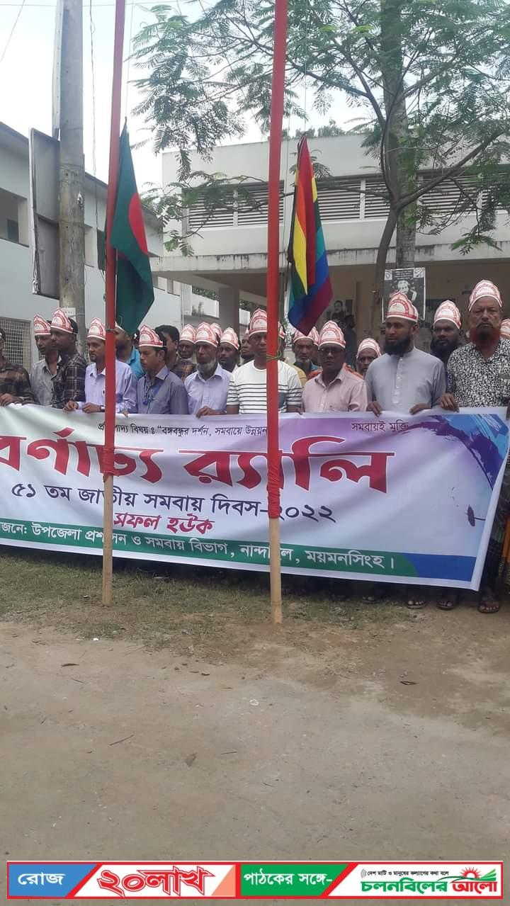 ময়মনসিংহের নান্দাইল উপজেলায় যথাযোগ্য মর্যাদার সাথে ৫১ তম জাতীয় সমবায় দিবস পালন করা হয়েছে। বঙ্গবন্ধুর দর্শন সমবায়ের উন্নয়ন এই৷ প্রতিপাদ্যকে সামনে রেখে সকালে উপজেলা সদরে মনোজ্ঞর্যালি আনুষ্ঠানিক ভাবে জাতীয় ও সমবায় পতাকা উত্তোলন করা হয়। সহকারী কমিশনার (ভূমি)ও নির্বাহী ম্যাজিস্ট্রেট এ, টি এম আরিফের সভাপতিত্বে উপজেলা পরিষদ হল রুমে আলোচনা সভা অনুষ্ঠিত হয়।উপজেলা সমবায় অফিসার নিবেদিতা করের সঞ্চালনা অনুষ্ঠিত আলোচনা সভায় উপজেলা কৃষি অফিসার মোঃ আনিসুজ্জামান, যুব উন্নয়ন অফিসার মোঃফয়েজ উদ্দিন, রসুলপুর গভীর নলকূপ কৃষক সমবায় সমিতির প্রতিনিধি মোঃ সাইদুর রহমান, সাংবাদিক ফরিদ মিয়া প্রমূখ বক্তব্য রাখেন। অনুষ্ঠানে সার্বিক সমন্বয় করেন সমবায় বিভাগের মোঃ ফজলুল হক। সমবায় দিবসের অনুষ্ঠানে উপজেলার বিভিন্ন সমবায়ী প্রতিষ্টানের নেতৃবৃন্দ যোগদান করেন।