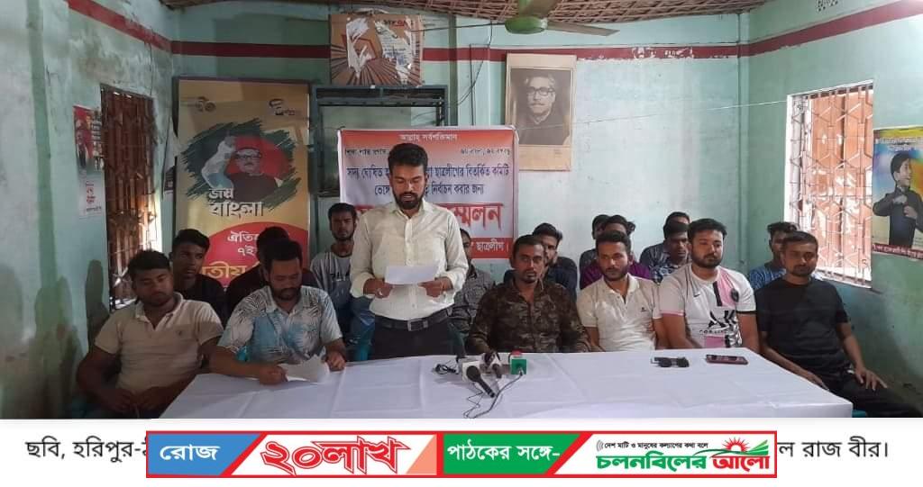 হরিপুরে ছাত্রলীগের নতুন কমিটি বাতিলের দাবিতে বিক্ষোভ মানববন্ধন ও সংবাদ সম্মেলন অনুষ্ঠিত