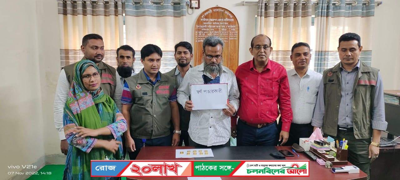 শুল্ক গোয়েন্দা ও তদন্ত সার্কেলের সহকারী পরিচালক মনিরুজ্জামান চৌধুরী বলেন, বেনাপোল আন্তর্জাতিক চেকপোষ্ট দিয়ে একজন পাসপোর্ট যাত্রী স্বর্ণের একটি চালান নিয়ে ভারতে পাচার করবে এমন তথ্যের ভিত্তিতে বেনাপোল শুল্ক গোয়েন্দা ও তদন্ত সার্কেল সদস্য চেকপোস্ট এলাকায় অবস্থান নেওয়া হয়। পরে পাসপোর্ট যাত্রীর ইমিগ্রেশনের এর সকল কার্যক্রম শেষ করে ভারতে প্রবেশের সময় তাকে গতিরোধ করে জিরো পোয়েন্ট থেকে আটক করা হয়। পরে তল্লাশি করে তার পরিহিত প্যান্টের ভেতরে বিশেষ কায়দায় লুকানো অবস্থায় ৯ টি স্বর্ণের বার উদ্ধার করা হয়।