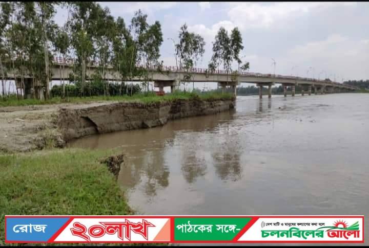 সরেজমিনে গিয়ে দেখা যায়, সেতুর পিলার সংলগ্ন মাটি ধসে গিয়েছে। এছাড়াও ফসলি জমি ও বিভিন্ন স্থাপনা ইতিমধ্যে নদীগর্ভে বিলীন হয়ে গেছে। ভাঙনে সর্বস্বান্ত হয়ে নদীর কিনারে দাঁড়িয়ে আফাজ আলী বলেন, আগ্রাসী হয়ে ওঠা এই নদীর ভাঙনের হুমকীর মুখে রয়েছে আমাদের ভিটামাটি। জিও ব্যাগ ফালিয়েও ভাঙন রোধ হয়নি। প্রায় ১০০ ঘরবাড়ি সরিয়ে নেওয়া হয়েছে। এখানে একটা বাঁধ নির্মাণ হলে আমরা রক্ষা পেতাম। এদিকে অবৈধ বালু উত্তোলনের জন্য সেতু ও এলাকা হুমকীর মুখে পড়েছে বলে জানিয়ে স্থানীয় বাসিন্দা রহমান জানান, এখানে নদীর পাড় ভেঙে পুরো একটি এলাকা বিলীন হয়ে গেছে। অতিরিক্ত বালু উত্তোলনের জন্য নদী ভাঙনের তীব্রতা বেড়েছে। এছাড়াও সেতুর পিলারের মাটি সরে যাচ্ছে।