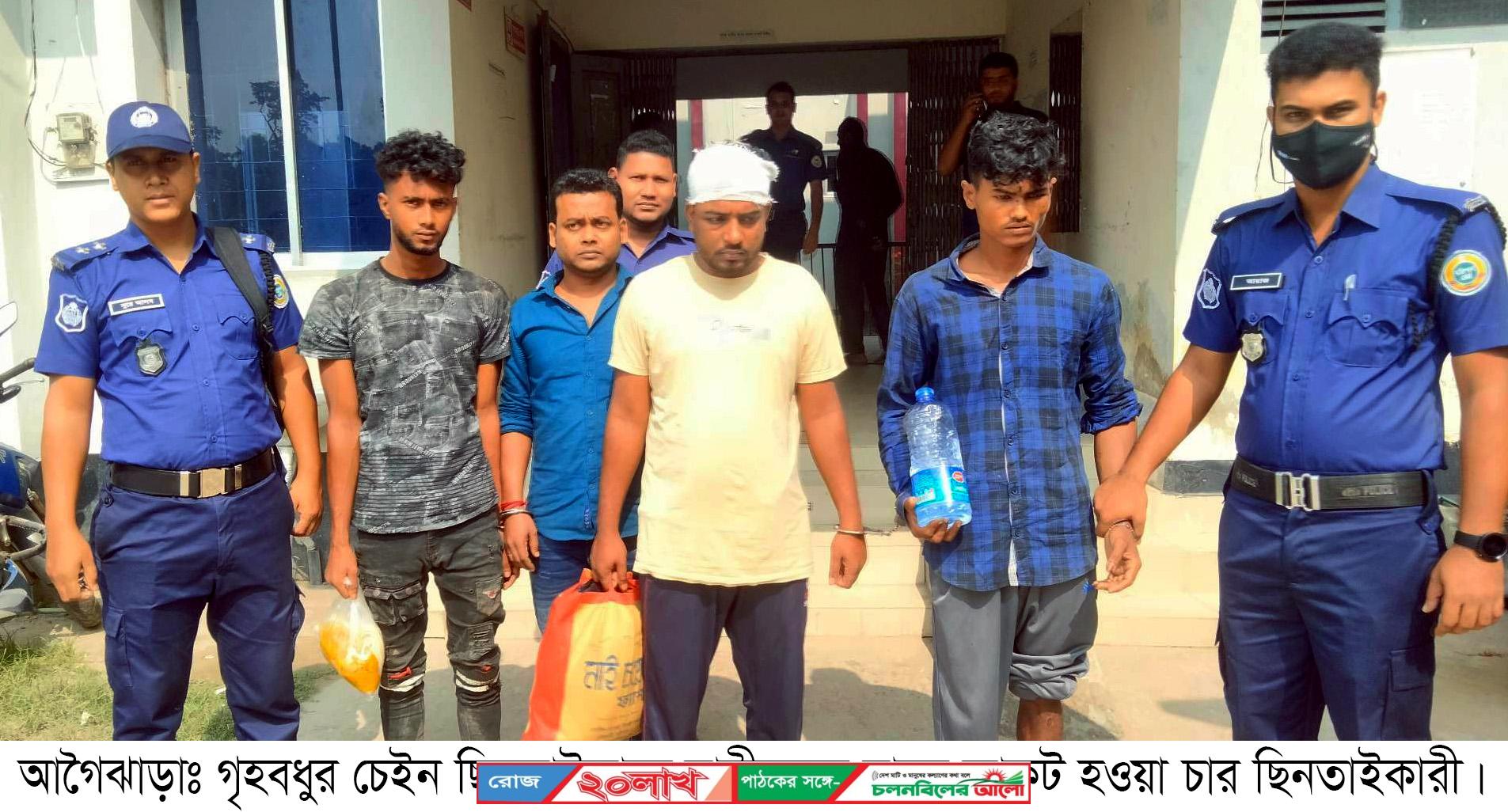আগৈলঝাড়ায় চার ছিনতাইকারীকে ধরে পুলিশে দিয়েছে জনতা