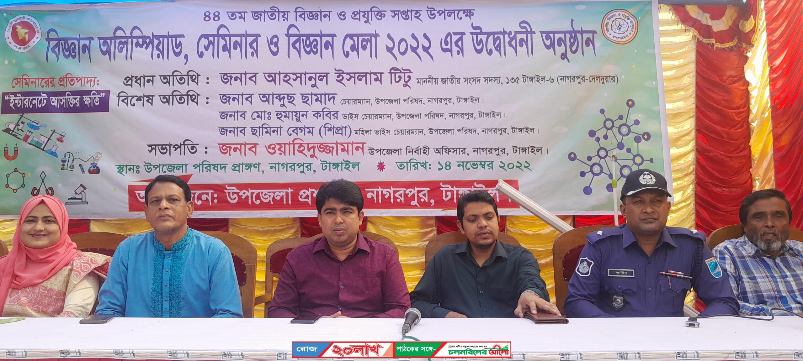 “ইন্টারনেটে আসক্তির ক্ষতি ” এ প্রতিপাদ্য নিয়ে টাঙ্গাইলের নাগরপুরে দুই দিন ব্যাপী ৪৪ তম জাতীয় বিজ্ঞান ও প্রযুক্তি সপ্তাহ উপলক্ষে বিজ্ঞান মেলা ২০২২ উদ্বোধন করা হয়েছে।