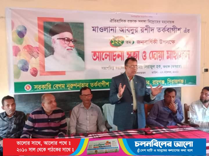 রায়গঞ্জে সরকারি বেগম নূরুণ নাহার তর্কবাগীশ কলেজে প্রখ্যাত নেতা মওলানা আব্দুর রশিদ তর্কবাগীশ এর ১২২ তম জন্মবার্ষিকী পালিত হয়েছে।