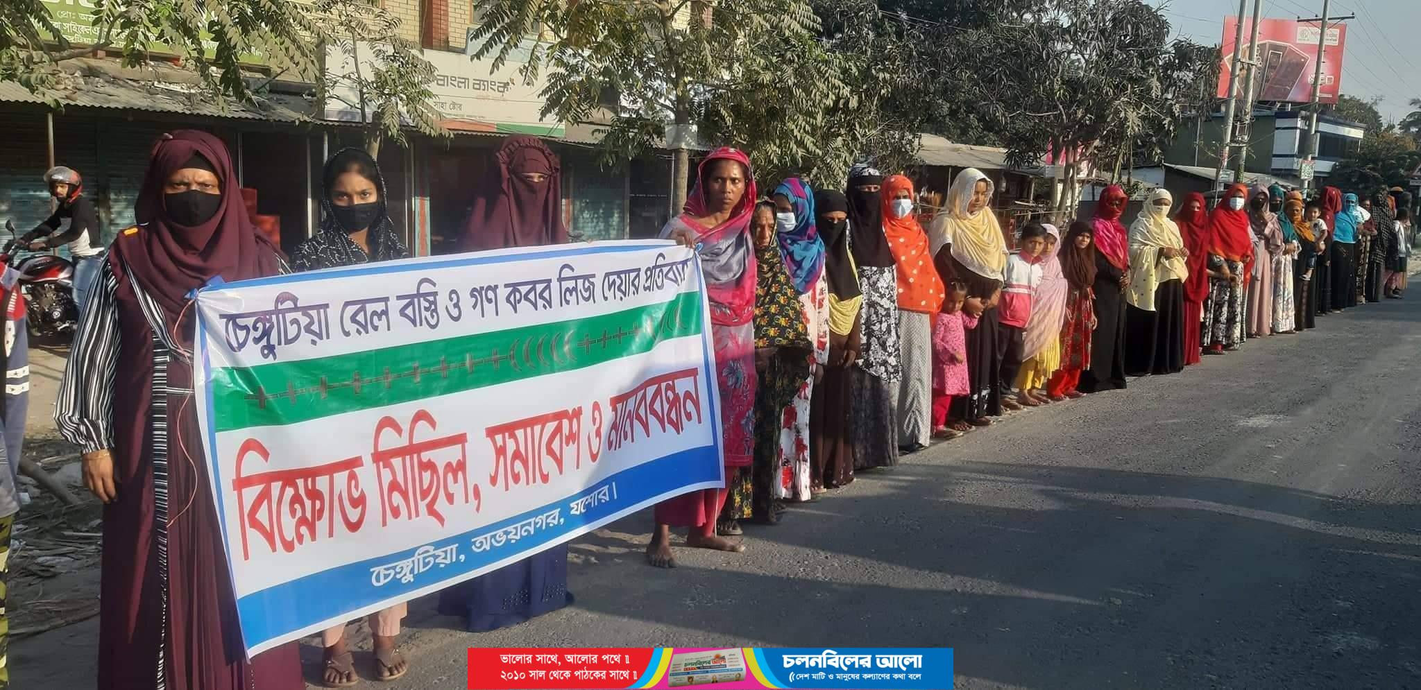 অভয়নগরে চেংগুটিয়া রেল বস্তিসহ গণকবর ইজারা দেওয়ার প্রতিবাদে মানববন্ধন