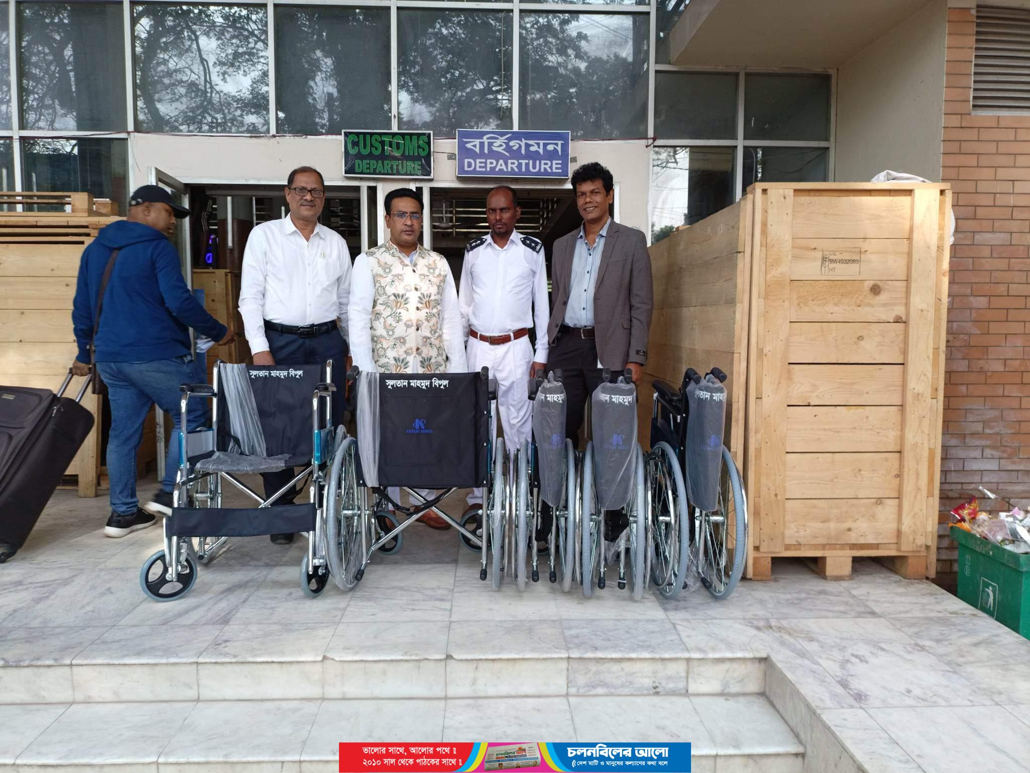 বেনাপোল আন্তর্জাতিক চেকপোস্ট দিয়ে ভারত-বাংলাদেশের মধ্যে যাতায়াতকারী অসুস্থ ও প্রতিবন্ধী যাত্রীদের সেবায় ৫টি হুইল চেয়ার উপহার দেন যশোর সদর উপজেলার সাবেক ভাইস চেয়ারম্যান সুলতান মাহমুদ বিপুল।