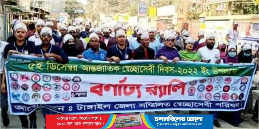 আন্তর্জাতিক স্বেচ্ছাসেবী দিবস উপলক্ষে টাঙ্গাইল জেলা সম্মিলিত স্বেচ্ছাসেবী পরিষদের বর্ণাঢ্য র্যালী অনুষ্ঠিত হয়েছে।