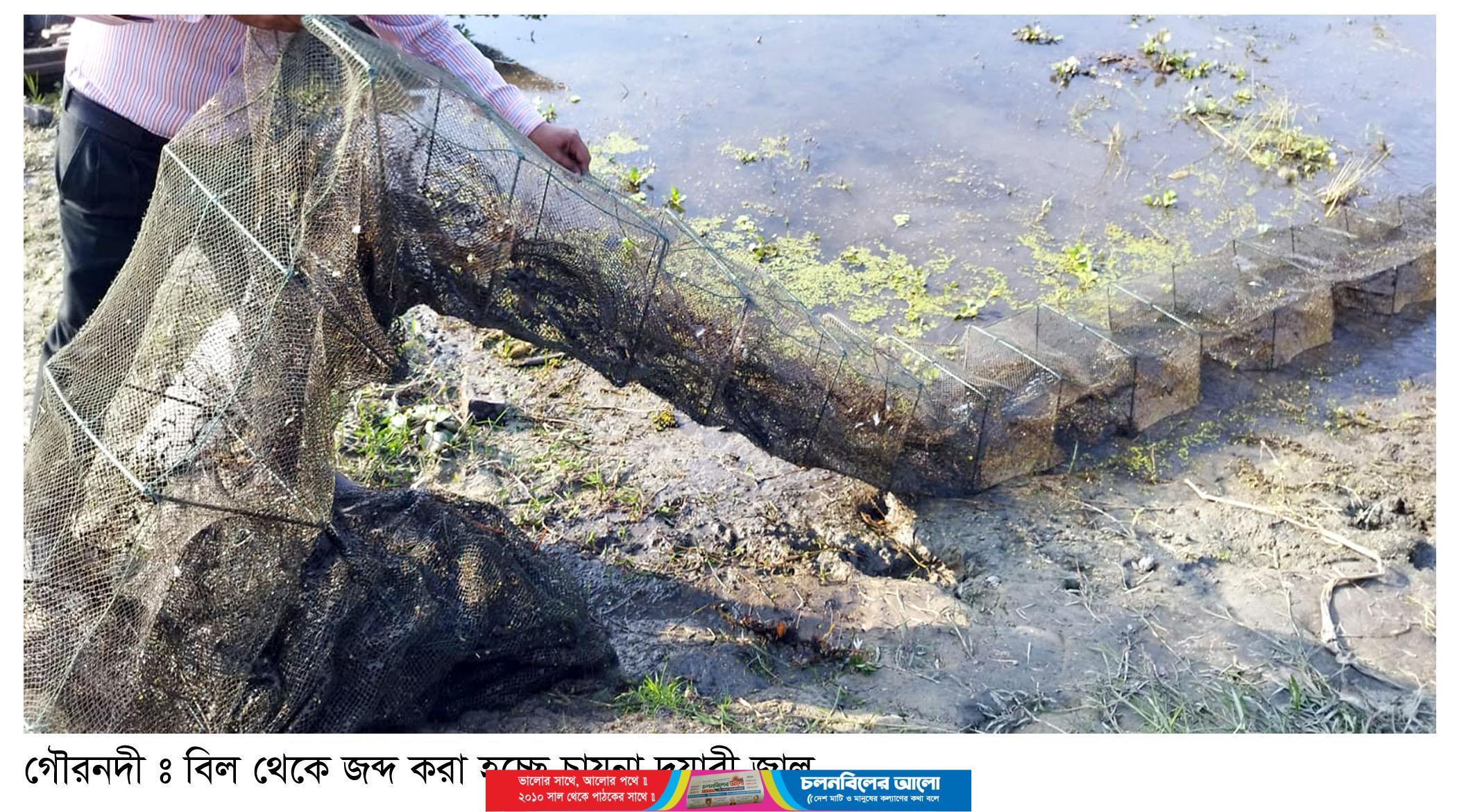 গৌরনদীতে অবৈধ চায়না দূয়ারী জাল জব্দ