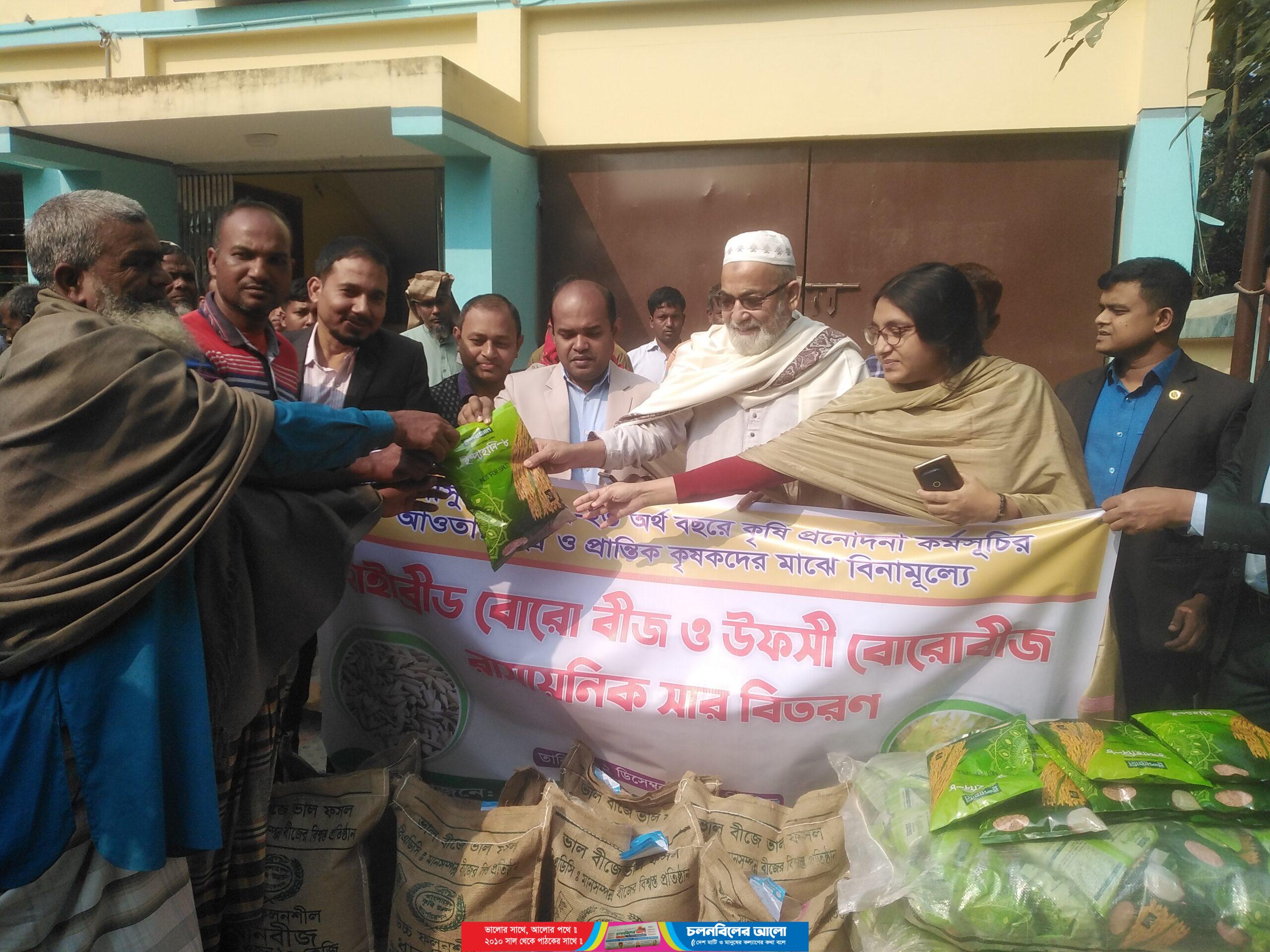 ১ হাজার ৫ শত ২০ জন ক্ষুদ্র ও প্রান্তিক কৃষকের মাঝে ২কেজি করে হাইব্রিড ধান বীজ, ১ হাজার ১ শত ৯০ জনের মাঝে ৫কেজি রূপসি জাতের ধান বীজ ১০ ডিএপি ও ১০ কেজি এমপিও সার বিনামূল্যে বিতরণ করেন।