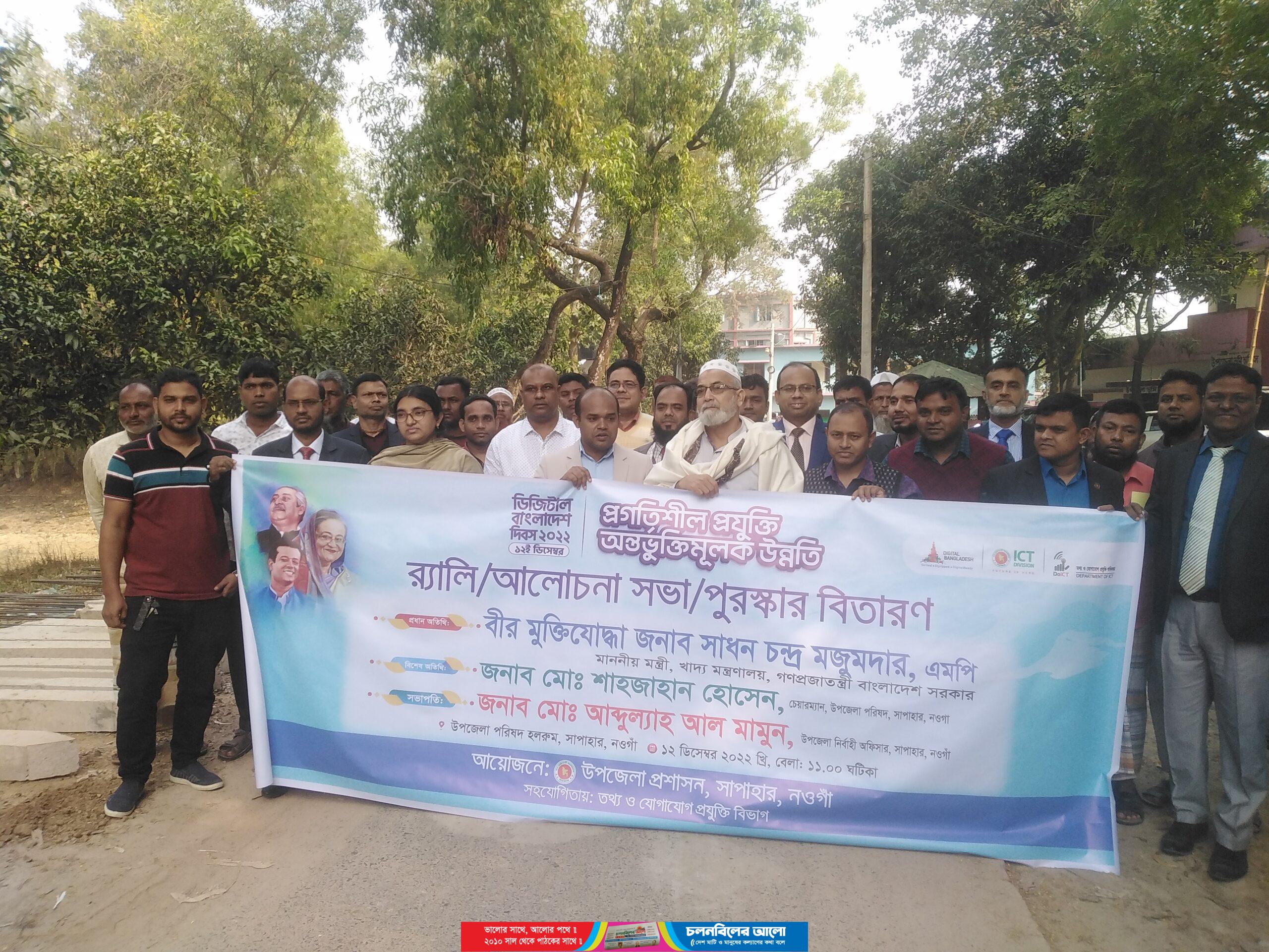 প্রগতিশীল প্রযুক্তি অন্তর্ভুক্তিমূলক উন্নতি প্রতিপাদ্য বিষয়কে সামনে রেখে নওগাঁর সাপাহারে ডিজিটাল বাংলাদেশ দিবস উপলক্ষে র্যালি ও আলোচনা সভা অনুষ্ঠিত হয়েছে।
