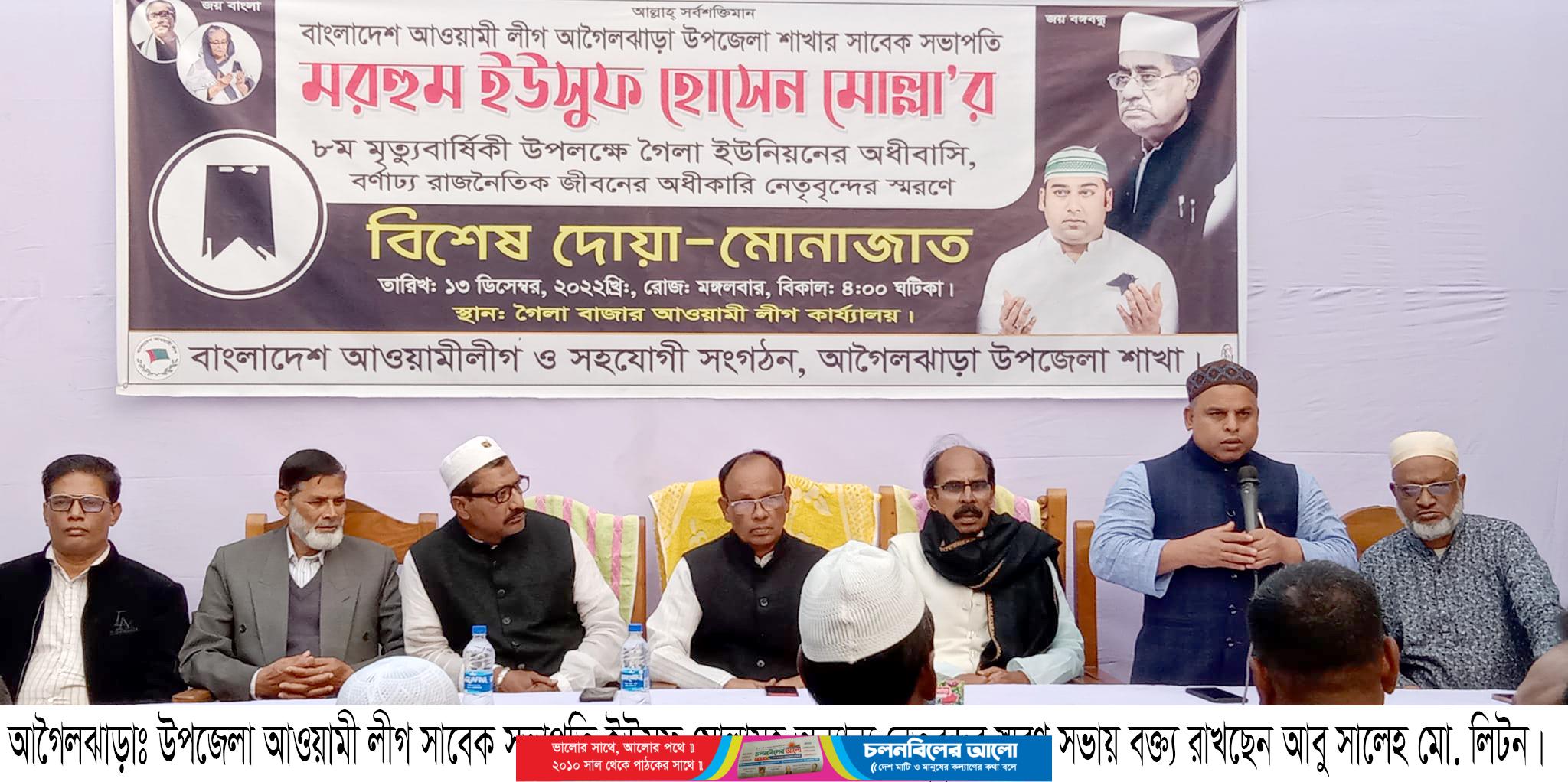 আগৈলঝাড়া আওয়ামী লীগ সাবেক সভাপতি ইউসুফ মোল্লাসহ আ’লীগ নেতৃবৃন্দর স্মরণসভা ও দোয়া মিলাদ অনুষ্ঠিত