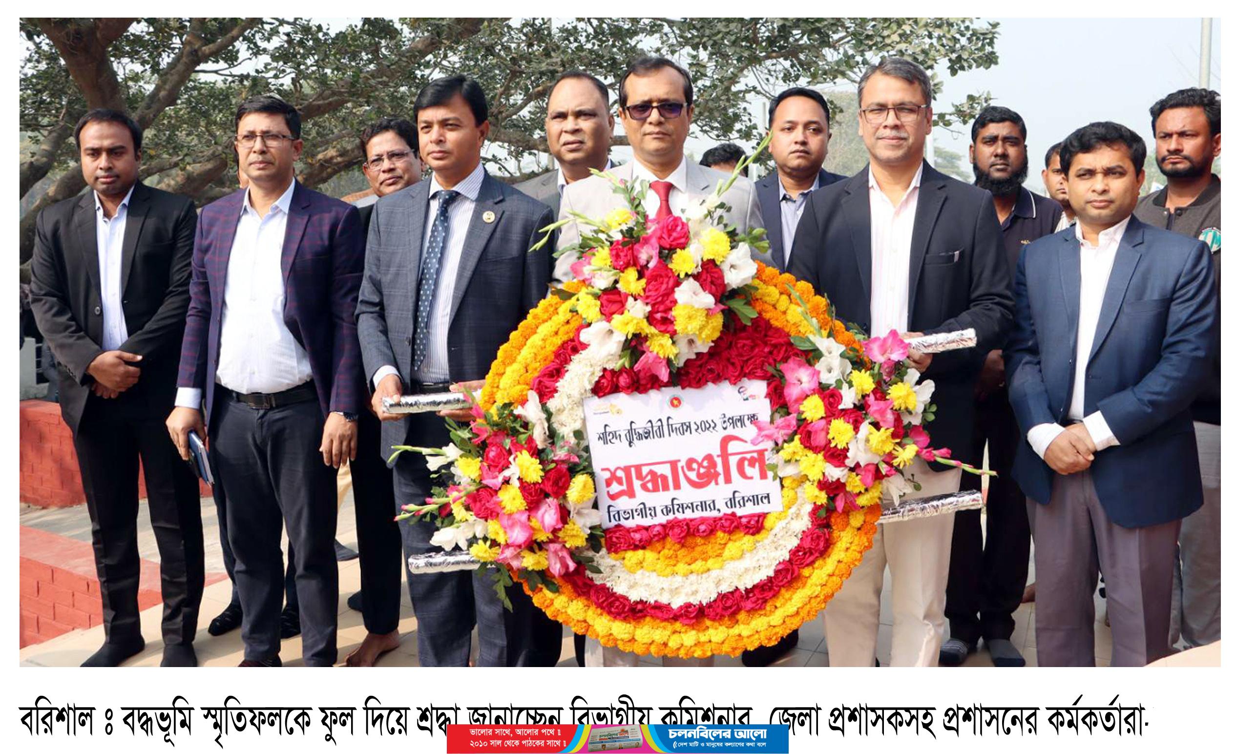 বুধবার সকাল সাড়ে ১০টায় জেলা প্রশাসনের আয়োজনে নগরীর ৩০ গোডাউন এলাকার বদ্ধভূমি স্মৃতি ফলকে ফুলেল শ্রদ্ধা জানিয়েছেন বিভাগীয় কমিশনার মো. আমিন উল আহসান, মেট্রোপলিটন পুলিশ কমিশনার মো. সাইফুল ইসলাম, অতিরিক্ত রেঞ্জ ডিআইজি মো. শহিদুল্লাহ, জেলা প্রশাসক মো. জাহাঙ্গীর হোসেনসহ সরকারী-বেসরকারী কর্মকর্তারা। একইদিন দুপুরে বরিশাল মহিলা ক্লাবে আলোচনা সভা করেছেন জেলা প্রশাসন। বিকেলে জেলা ও মহানগর আওয়ামী লীগের উদ্যোগে সদর রোডের দলীয় কার্যালয়ে আলোচনা সভা অনুষ্ঠিত হয়।
