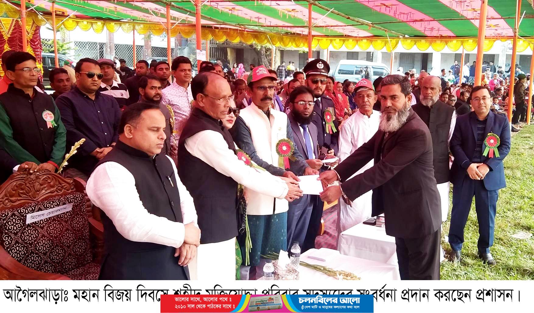 বরিশালের আগৈলঝাড়ায় উপজেলা প্রশাসনের উদ্যোগে উপজেলার ১৬জন শহীদ মুক্তিযোদ্ধা পরিবার সদস্যদের সংবর্ধণা ও সম্মাননা প্রদান করা হয়েছে।