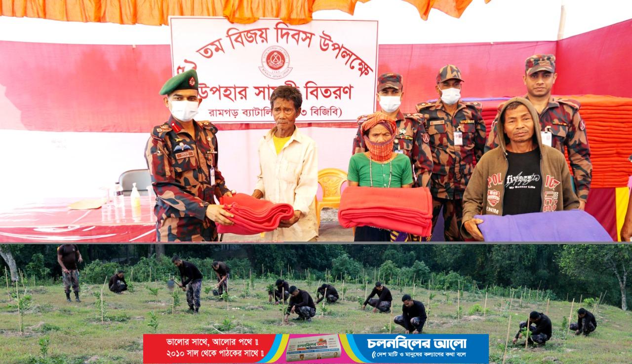 মহান বিজয় দিবসে পাহাড়ের অবহেলিত অসহায় ও দু:স্থদের মাঝে শীত বস্ত্র বিতরণ ও বিনামূল্যে চিকিৎসা সেবা প্রদান সহ বিভিন্ন কর্মসূচি পালন করেছে খাগড়াছড়ির রামগড়ে সীমান্ত রক্ষায় নিয়োজিত বর্ডার গার্ড ব্যাটালিয়ন (৪৩ বিজিবি)।