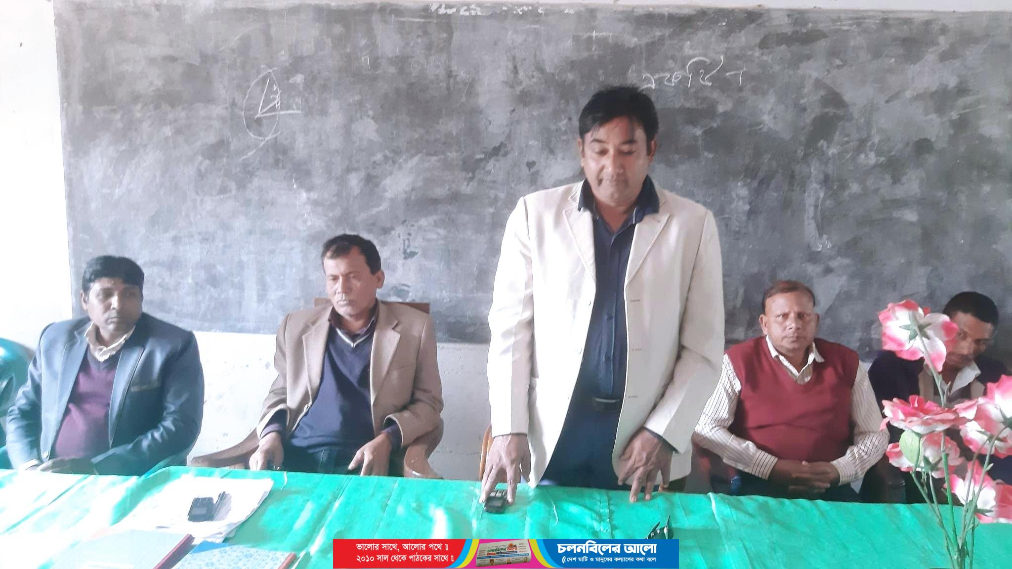 বিদ্যালয়ের সভাপতি তার বক্তব্যে আসন্ন ২০২৩ সালে এসএসসি পরীক্ষায় অংশগ্রহনকারী শিক্ষার্থীদের ভাল ফলাফলের জন্য শিক্ষার্থীদের কঠোর পরিশ্রমের পাশাপাশি  শিক্ষকদের ও অভিভাবকদের সজাগ দৃষ্টি রাখার আহবান জানান ।বেশি করে ভুমিকা রাখার আহবান জানান । আগামী ৪ মাস শিক্ষার্থীদের মোবাইল ফোন থেকে সম্পর্ক ছিন্ন করে  বইয়ে মনোযোগী হলে ভাল ফলাফল করা সম্ভব বলে প্রত্যয় ব্যক্ত করেন।