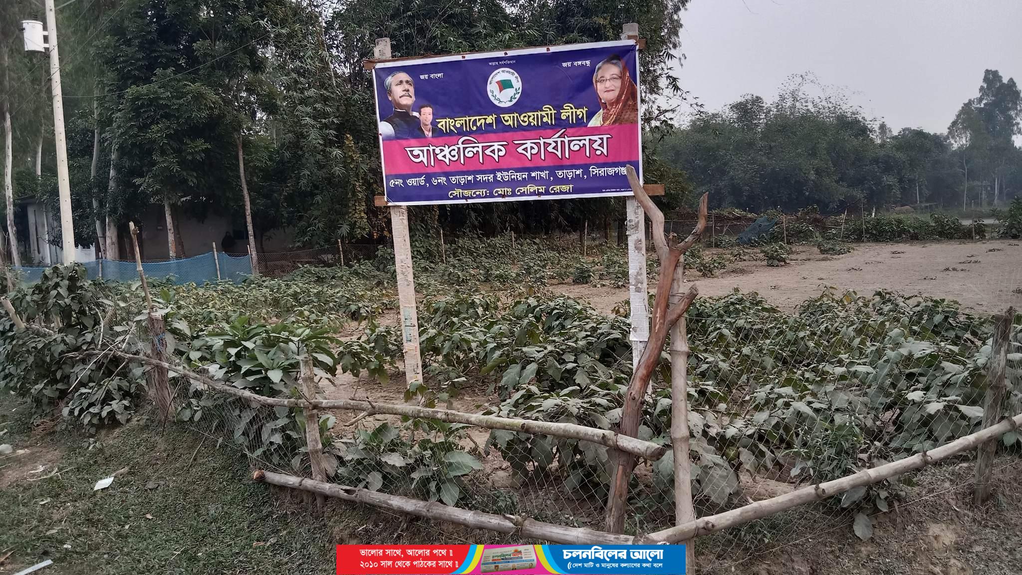 তাড়াশে কৃষকের সবজি বাগান দখল করে আওয়ামীলীগের সাইনবোর্ড