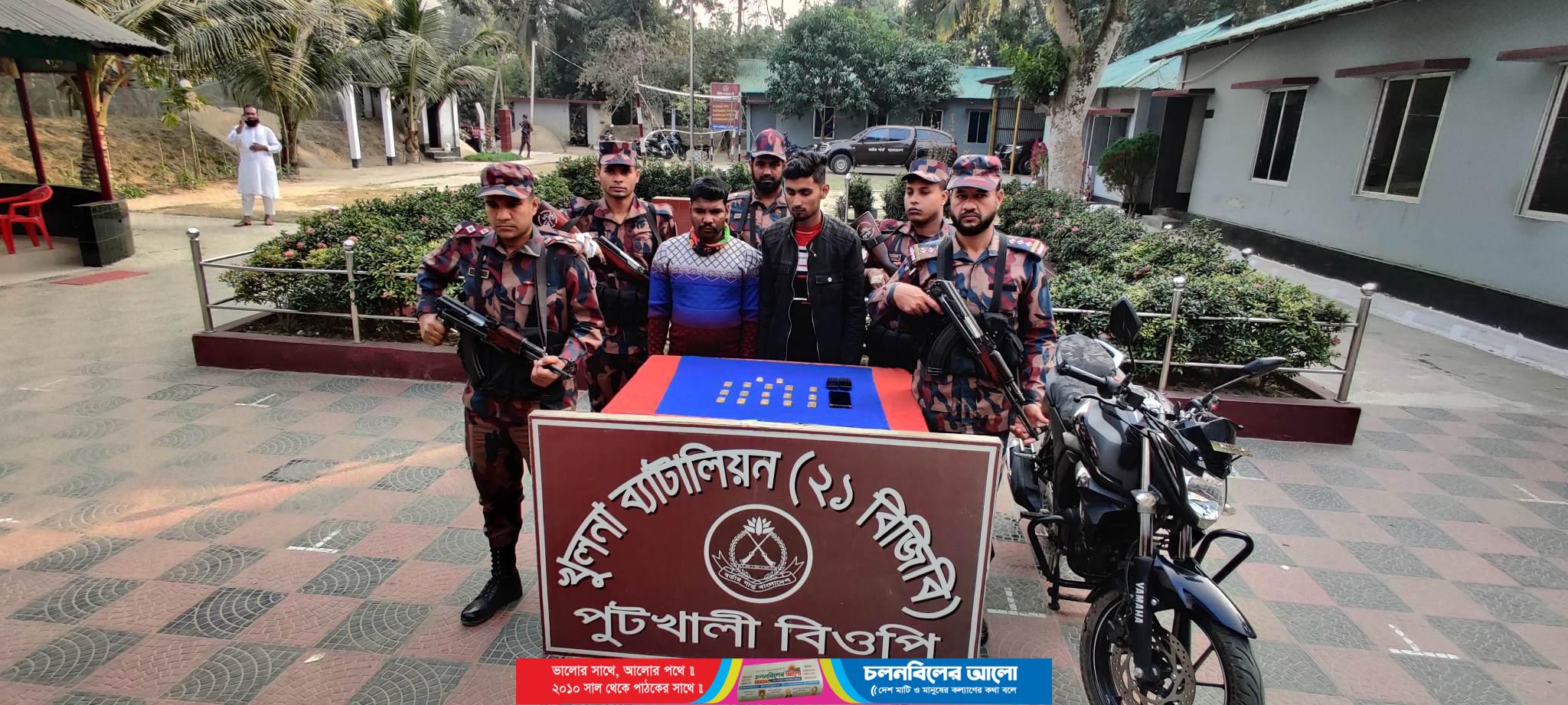 খুলনা ২১ বিজিবি ব্যাটালিয়নের অধিনায়ক লেফটেন্যান্ট কর্নেল তানভীর রহমান জাননা,গোপন সংবাদের ভিত্তিতে জানতে পারি পুটখালি সীমান্ত এলাকা দিয়ে বিপুল পরিমাণ স্বর্ণের একটি চালান ভারতে পাচারের উদ্দেশ্যে নিয়ে যাবে। এমন সংবাদের ভিত্তিতে পুটখালি এলাকায় অভিযান চালিয়ে  সন্দেহ ভাজন দুই মোটরসাইকেল  আরোহিকে গতি রোধ করতে বলা হয়। এসময় তারা মোটরসাইকেল গতি রোধ না করে পালিয়ে যায়।এবং তাদেরকে ধাওয়া করলে তাদের কাছে থাকা একটি ব্যাগ ফেলে পালিয়ে যায়। এবং সে ব্যাগের মধ্যে থেকে ১৫ পিচ স্বর্ন উদ্ধার করা হয়। পরবর্তীতে একই জায়গায় কিছু সময় পর একই দলের সন্দেহ ভাজন আরো দুই মোটরসাইকেল আরোহিকে গতি রোধ করা হয়। এসময় তাদের মোটরসাইকেল থেকে দুটি স্বর্ণের বার উদ্ধার করা হয়। এবং তাদেরকে আটক করা হয়।