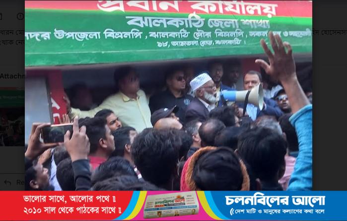 ঝালকাঠি জেলা বিএনপি’র গণ মিছিলে পুলিশি বাঁধায়  জেলা কার্যালয়ে সামনেই পন্ড হয়ে যায়। সরকারের পদত্যাগসহ ১০ দফা বাস্তবায়ন এবং দেশনেত্রী বেগম খালেদা জিয়া, মির্জা ফখরুল ইসলাম আলমগীর, মির্জা আব্বাসসহ সারাদেশে গ্রেফতারকৃত নেতৃবৃন্দের মুক্তির দাবীতে ঝালকাঠি জেলা বিএনপি’র গণ মিছিলে পুলিশি বাধা দেয়। পুলিশি বেরিকেটের মধ্যে শনিবার সকাল ১১টায় শহরের আমতলা রোডস্থ জেলা বিএনপির কার্যালয়ের সামনে থেকে বিক্ষোভ মিছিল শুরু হয়। সামনে অগ্রসর হতে চাইলে তিন দিকে পুলিশের বেরিকেট থাকায় মিছিল পন্ড হয়ে যাওয়ায় জেলা কার্যালয়ের সামনে সভা অনুষ্ঠিত হয়।