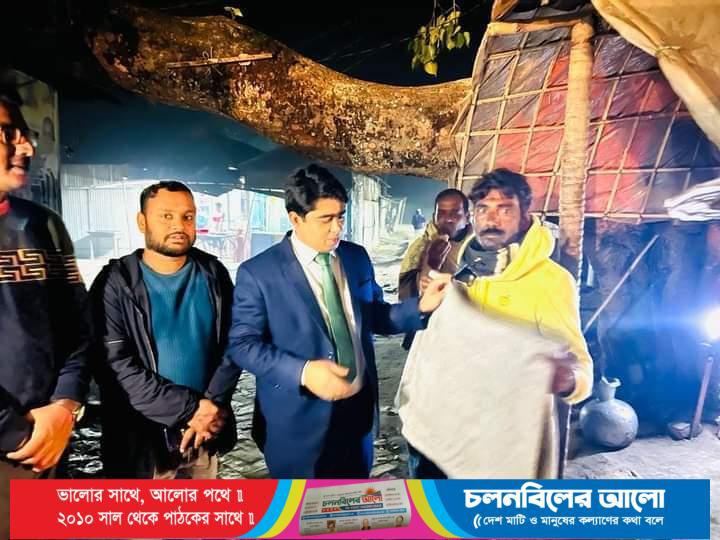 মঙ্গলবার (২৭ডিসেম্বর) মধ্যরাতে শহরের বিভিন্ন জায়গায় শীতার্ত মানুষের জন্য বঙ্গবন্ধুর কন্যা প্রধানমন্ত্রী শেখ হাসিনার দেয়া উপহার কম্বল বিতরণ করেন তিনি।