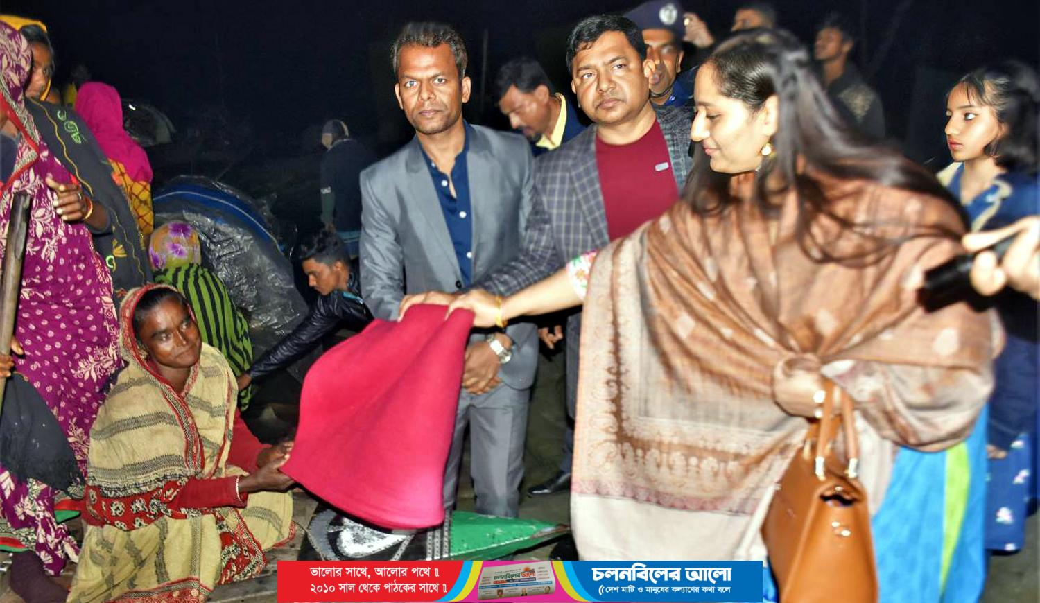নদীতে ভাসমান বেঁদে সম্প্রদায় ও শীতার্তদের মাঝ কম্বল বিতরণ করেছেন বাংলাদেশ পুলিশের নারী কল্যান সমিতি (পুনাক)’র নেতৃবৃন্দরা।