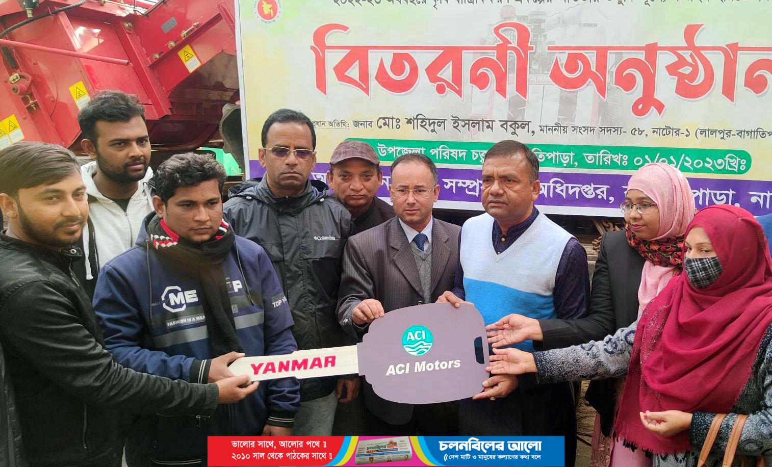 কৃষি সপ্রসারণ অধিদপ্তরের আয়োজনে কম্বাইন হারভেস্টার মেশিন বিতরণী অনুষ্ঠানে অতিথি ছিলেন, নাটোর-১ আসনের সংসদ সদস্য শহিদুল ইসলাম বকুল। ইউএনও (ভারপ্রাপ্ত) সুরাইয়া মমতাজের সভাপতিত্বে ও কৃষি কর্মকর্তা ড. ভবসিন্ধু রায়’র সঞ্চালনায় উপস্থিত ছিলেন, উপজেলা পরিষদের চেয়ারম্যান অহিদুল ইসলাম গকুল, মহিলা ভাইস চেয়ারম্যান খোদেজা বেগম শাপলা ও উপজেলা আওয়ামী লীগের সভ-সভাপতি দ্বিপক কুমার কুন্ডু প্রমুখ।