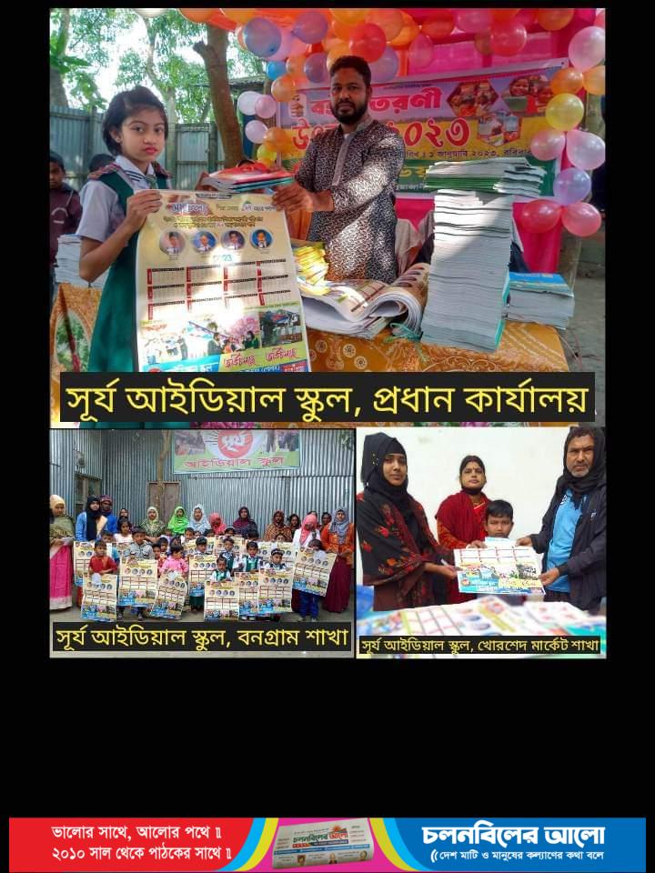 এই ধারাবাহিকতায় নাগরপুর উপজেলার ঐতিহ্যবাহী শিক্ষাপ্রতিষ্ঠান সূর্য আইডিয়াল স্কুল এর চারটি শাখা যথাক্রমে দুয়াজানি- প্রধান কার্যালয়, কাঠুরি শাখা, খোরশেদ মার্কেট শাখা এবং নতুন শাখা বনগ্রামে একযোগে নতুন শিক্ষাবর্ষ’২৩ এর সকল ছাত্রছাত্রীদের হাতে সরকার কর্তৃক প্রদত্ত পাঠ্য বই তুলে দেওয়া হয়।