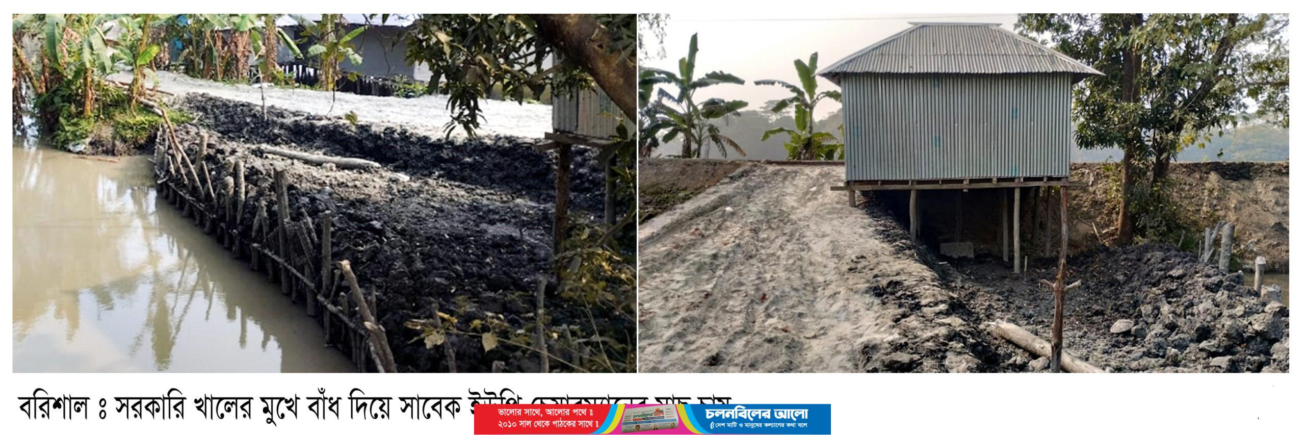 উজিরপুরে সরকারি খালে বাঁধ দিয়ে মাছ চাষ