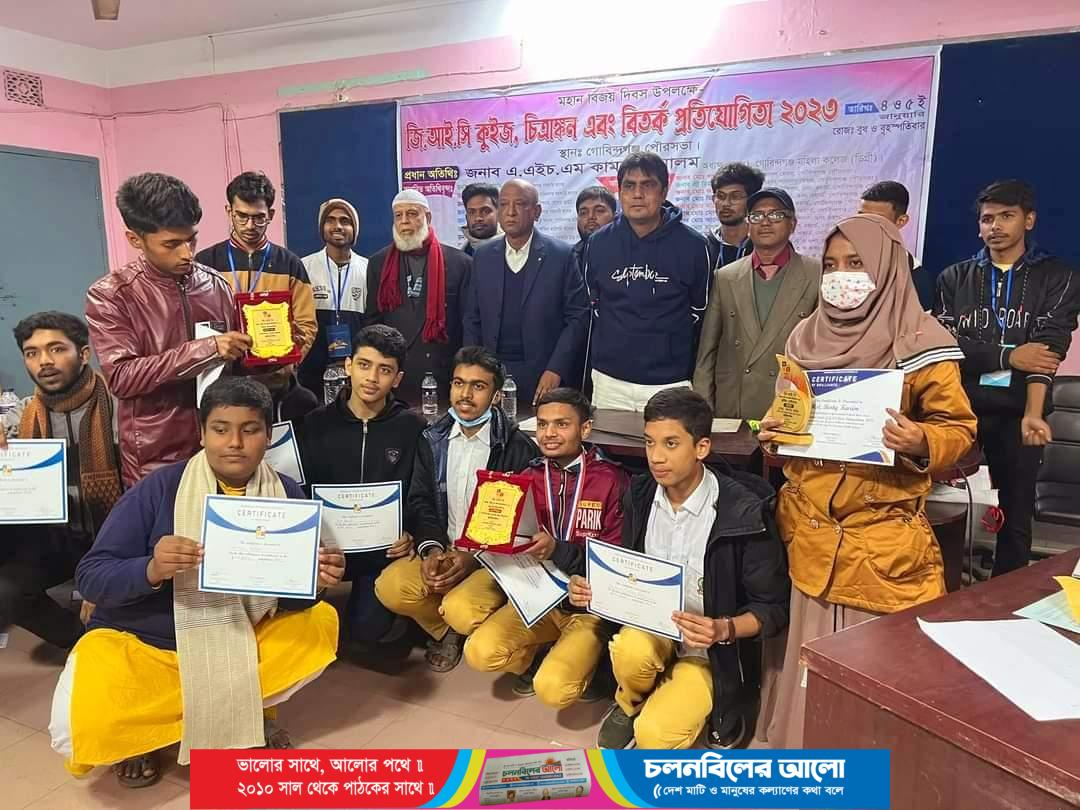 গাইবান্ধার গোবিন্দগঞ্জে মহান বিজয় দিবস উপলক্ষে জিআইসি কুইজ, বিতর্ক প্রতিযোগিতা পৌরসভার হলরুমে অনুষ্ঠিত হয়েছে।