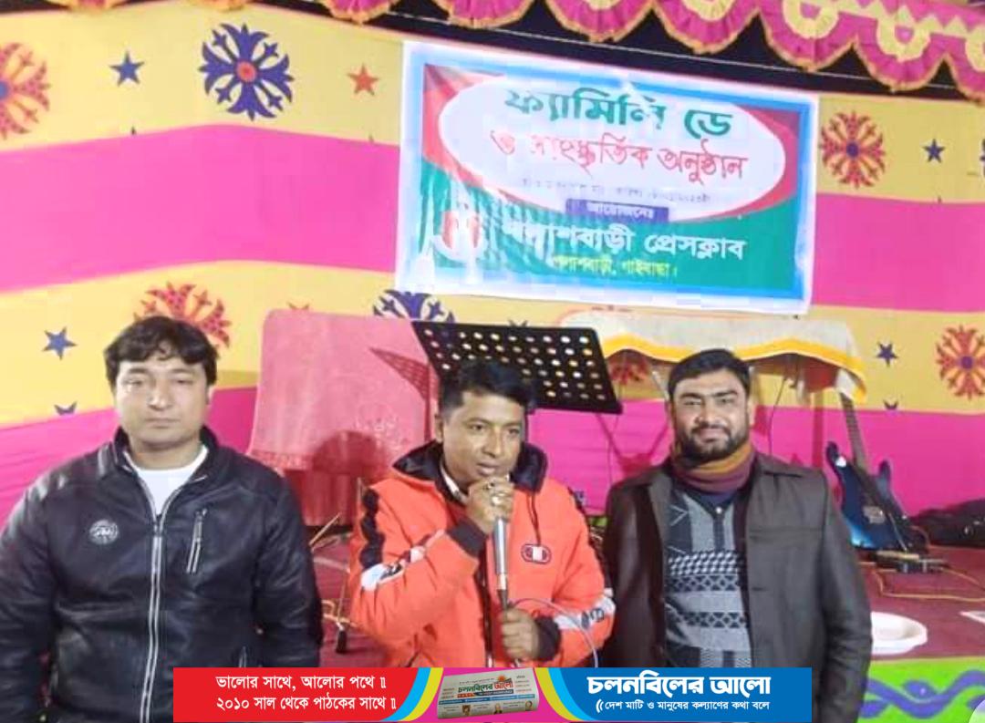 আনন্দঘণ পরিবেশে গণমাধ্যমকর্মীদের পরিবারের সদস্যদের নিয়ে এই প্রথম গাইবান্ধা জেলার পলাশবাড়ী প্রেসক্লাবের আয়োজনে ফ্যামিলি-ডে ও সাংস্কৃতিক অনুষ্ঠান অনুষ্ঠিত হয়েছে।