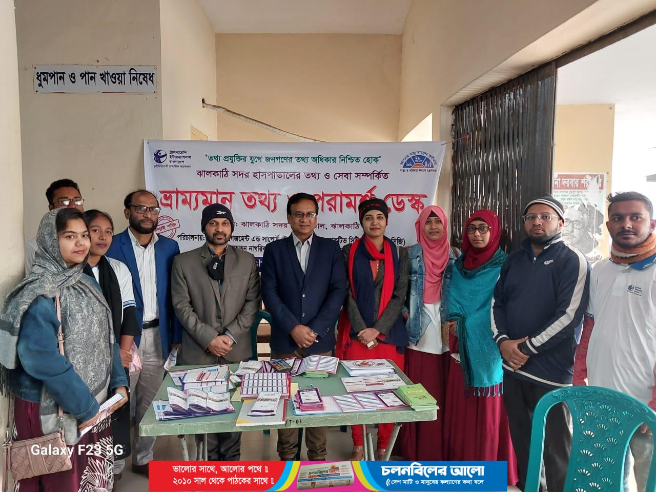 ভ্রাম্যমাণ তথ্য ও পরামর্শ সেবা ডেস্ক উদ্বোধন করেন ঝালকাঠি সদর হাসপাতালের তত্বাবধায়ক ডা. মোঃ জহিরুল ইসলাম। এ সময় সচেতন নাগরিক কমিটি (সনাক) এর স্বাস্থ্য বিষয়ক উপকমিটির যুগ্ম আহ্বায়ক কবিতা হালদার, টিআইবি’র এরিয়া কোঅর্ডিনেটর মিজানুর রহমান, ইয়েস গ্রুপের দলনেতা খান জাহান রিমন, সহদলনেতা সাদিয়া আক্তার বৃষ্টিসহ ইয়েস ও এসিজি গ্রুপের সদস্যরা উপস্থিত ছিলেন।