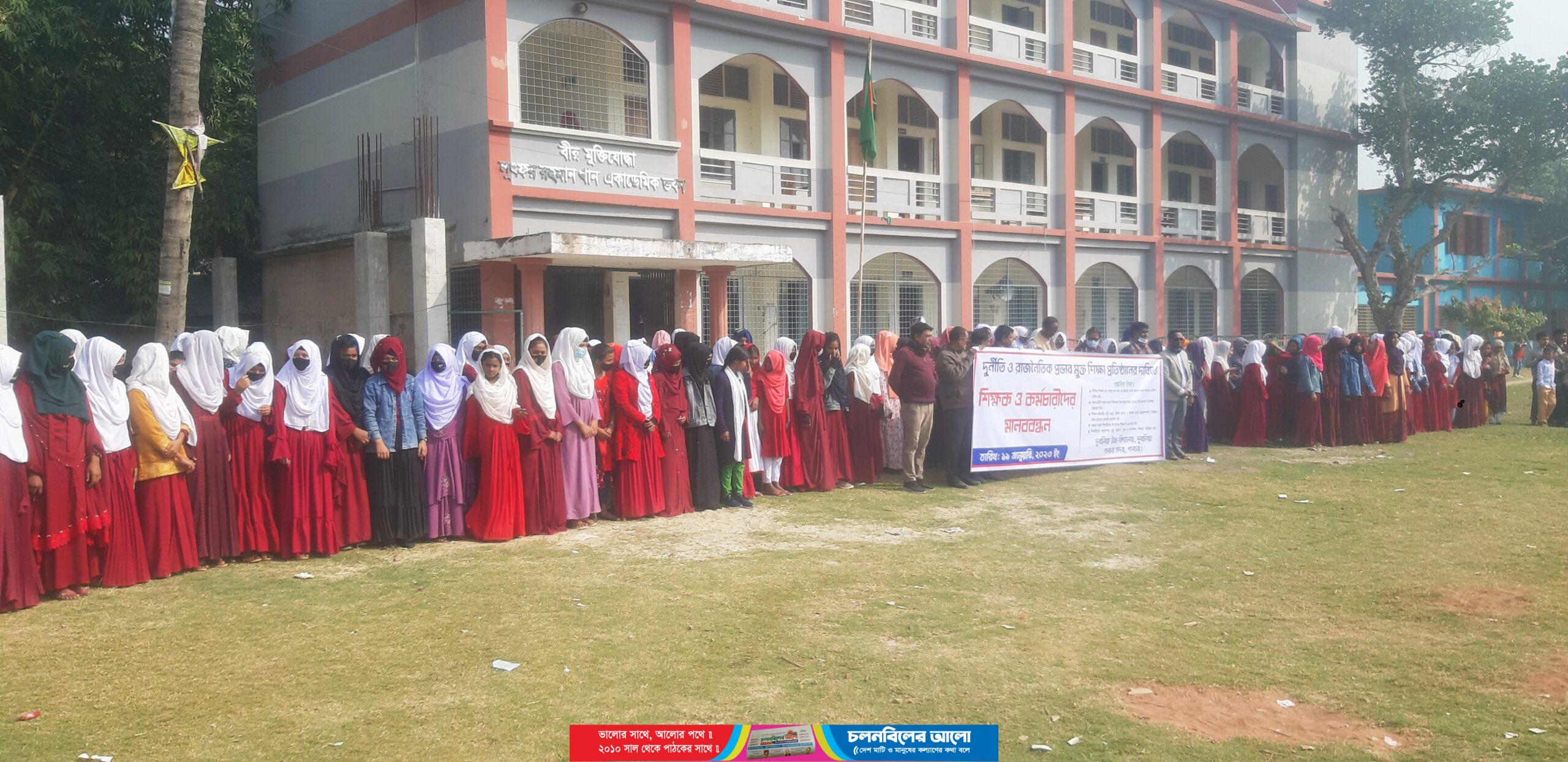 মানববন্ধনে উপস্থিত ছিলেন সিনিয়র শিক্ষক মো. আব্দুল হক, আসাব উদ্দিন, আকমল হোসেন, বাবুল কুমার কর্মকার, মোছা. সবনম মোস্তারী, গোলাপী রানি সরকার, শহিদুর রহমান, জিলাল উদ্দিন, আব্দুস শুকুর, কামাল হোসেন, সুজন আলী খান, ছাবিনা ইয়াসমিন ও জামাল হোসেনসহ বিদ্যালয়ের কর্মচারী ও সাধারণ শিক্ষার্থীরা।