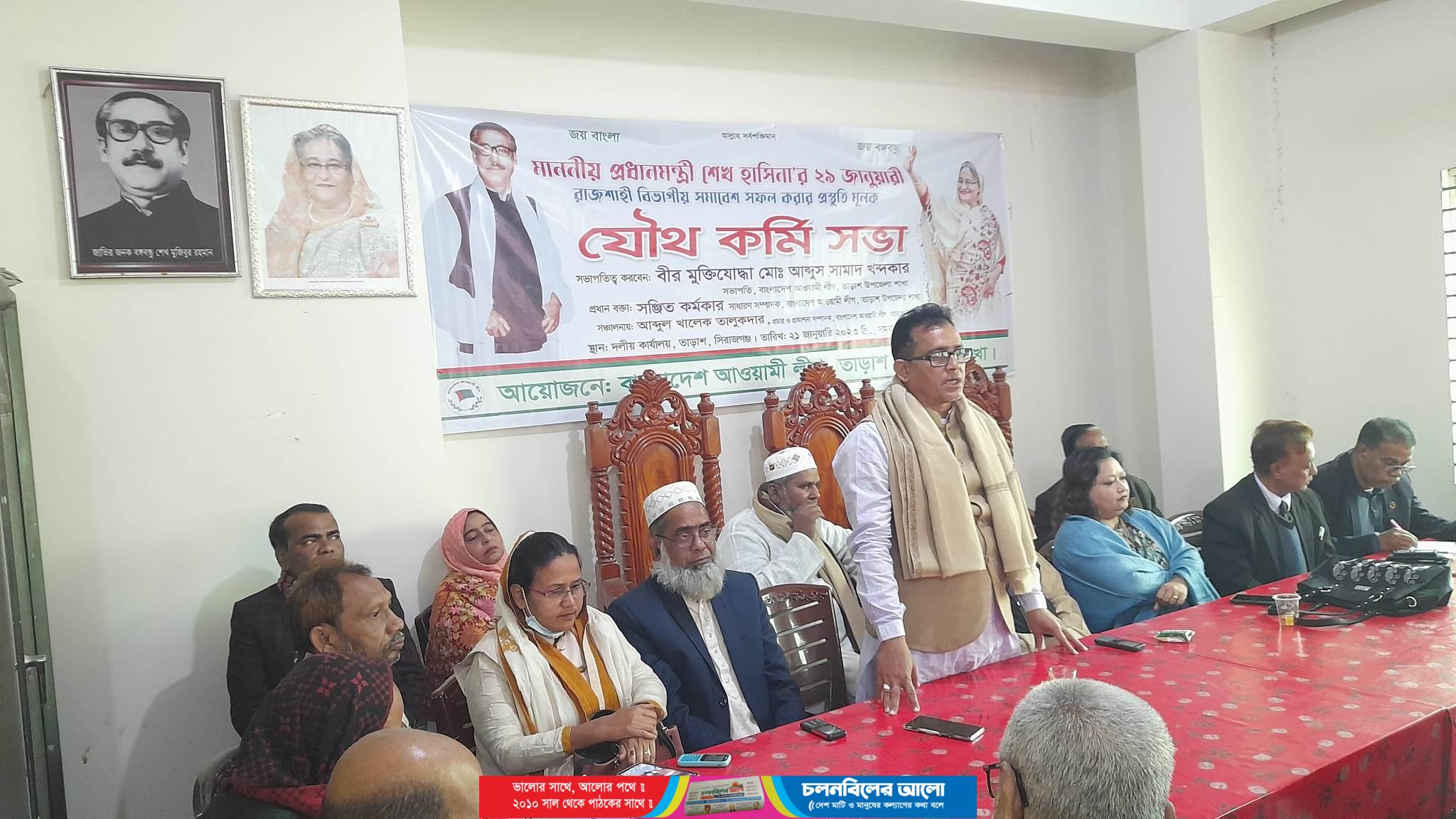 রাজশাহীতে মাননীয় প্রধানমন্ত্রী জননেত্রী শেখ হাসিনার জনসভা সফল করার লক্ষ্যে তাড়াশে যৌথকর্মী সভা