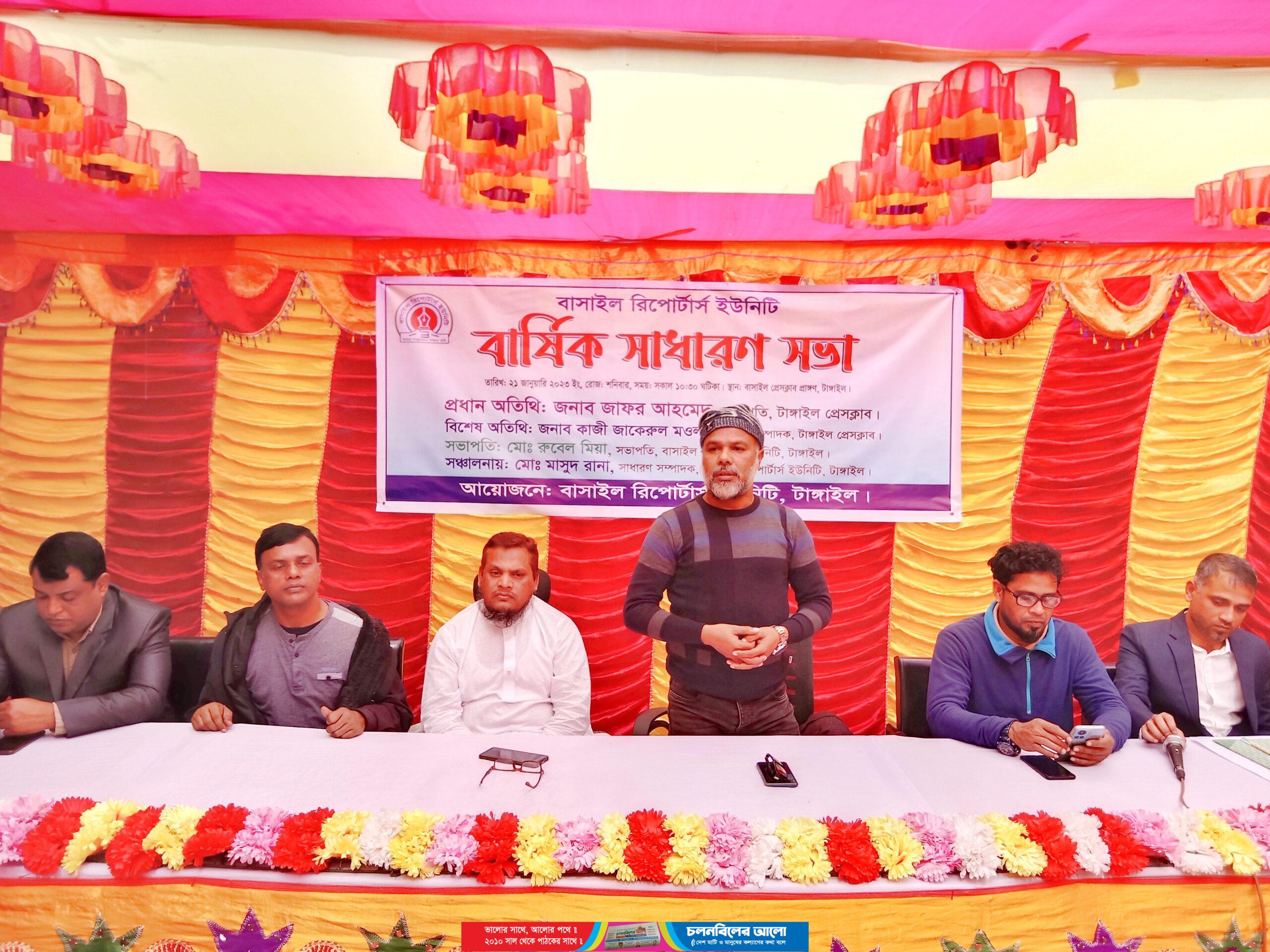 টাঙ্গাইলের বাসাইল রিপোর্টার্স ইউনিটির বার্ষিক সাধারণ সভা অনুষ্ঠিত হয়েছে। শনিবার (২১ জানুয়ারি) সকালে বাসাইল রিপোর্টার্স ইউনিটির উদ্যোগে বাসাইল রিপোর্টার্স ইউনিটির এ সভা অনুষ্ঠিত হয়।