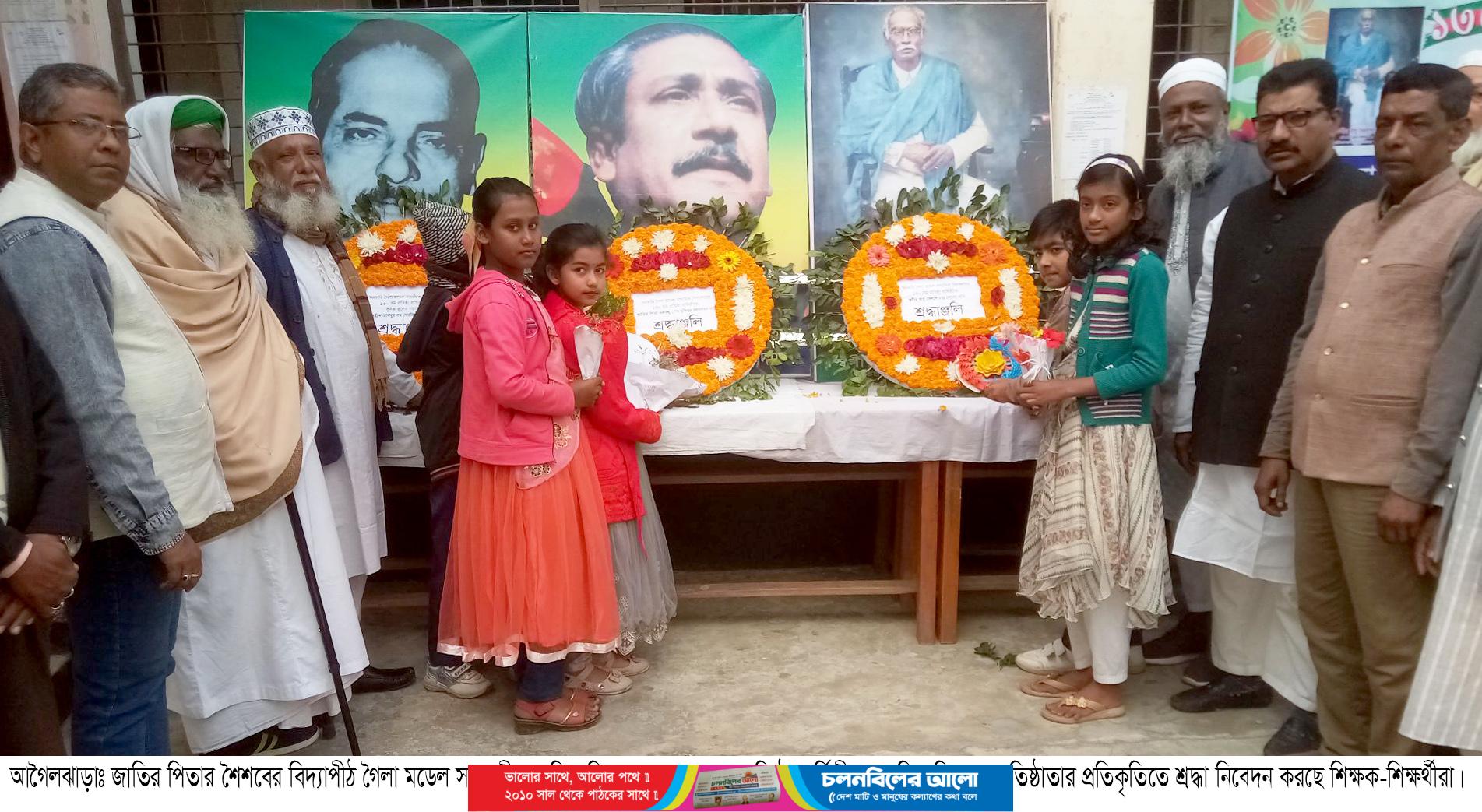 জাতির পিতা বঙ্গবন্ধু শেখ মুজিবুর রহমানের শৈশবে অধ্যয়ন করা বিদ্যাপীঠ, বরিশালের আগৈলঝাড়া উপজেলার ১৩০ বছরের ঐতিহ্যবাহী সরকারী গৈলা মডেল মাধ্যমিক বিদ্যালয়ের প্রতিষ্ঠা বার্ষিকী আলোচনা সভা অনুষ্ঠিত হয়েছে।