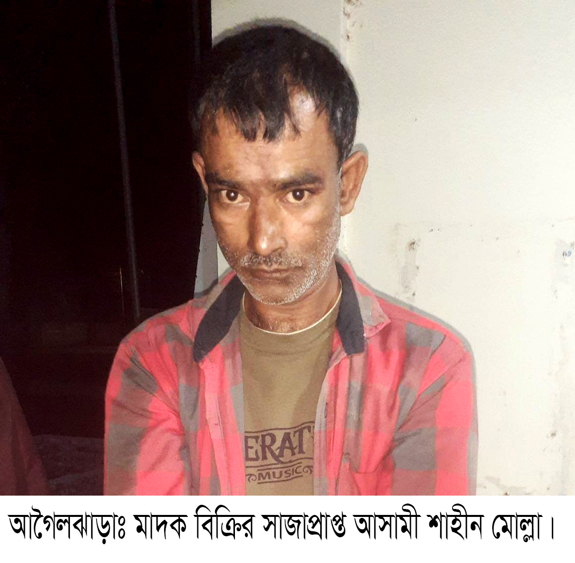 আটক শাহীন ভ্রাম্যমান আদালতে নিজের দোষ স্বীকার করায় আদালতের বিচারক ও উপজেলা নির্বাহী অফিসার মো. সাখাওয়াত হোসেন মাদক ব্যবসায়ি শাহীনকে ছয় মাসের বিনাশ্রম কারাদন্ডের আদেশ প্রদান করেন। দন্ডপ্রাপ্ত শহীনকে সোমবার বরিশাল কেন্দ্রীয় কারাগারে প্রেরণ করা হয়েছে।