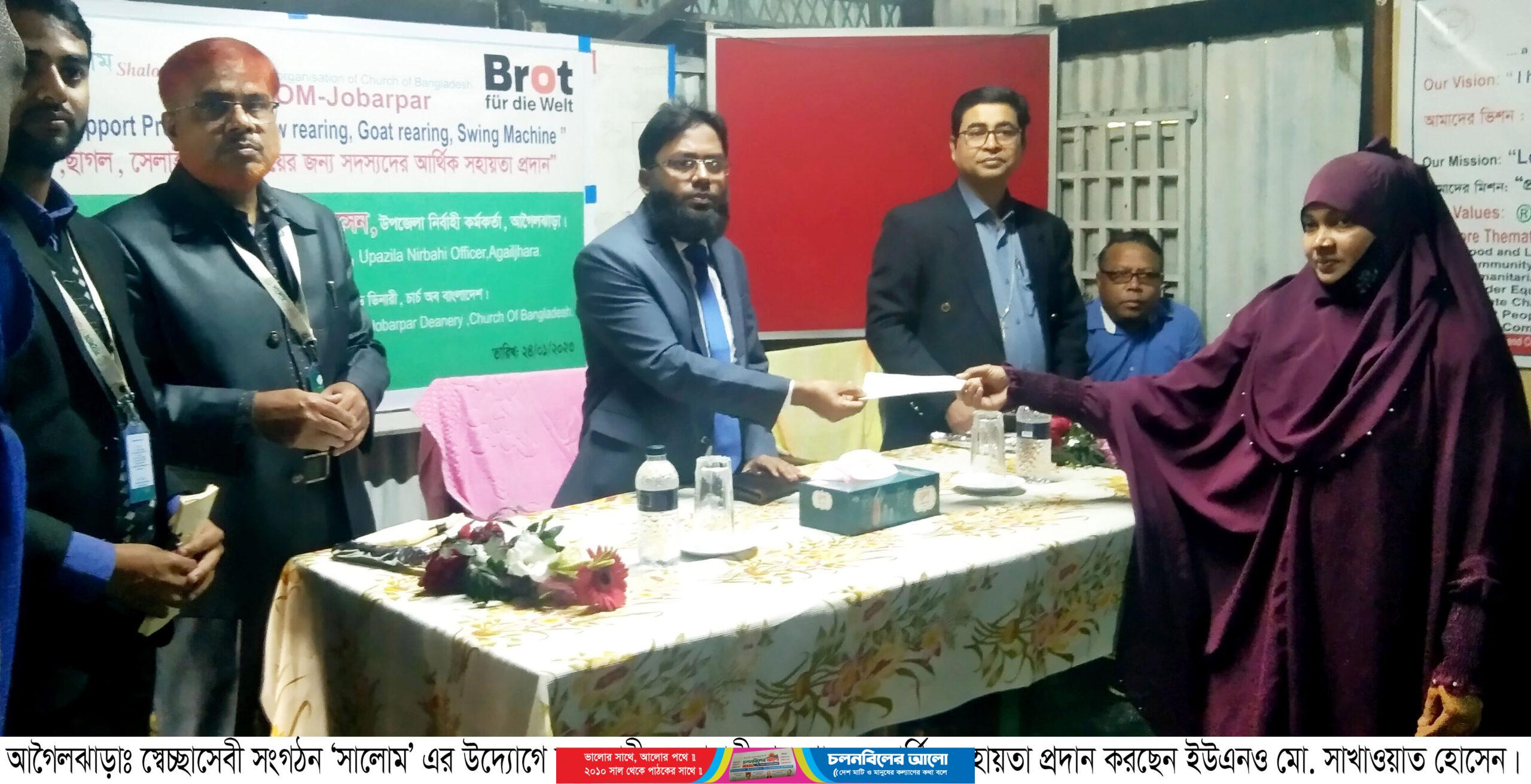 দাতা দেশ জার্মানের আর্থিক সহায়তা পরিচালিত স্বেচ্ছাসেবী সংস্থা সালোম এর উদ্যোগে মঙ্গলবার সকালে সংস্থার জোবারপাড় কার্যালয়ে ১৬০জন নারীকে ১৫লাখ ২০হাজার টাকা আর্থিক সহায়তা অনুদানের চেক বিতরণ করা হয়েছে।