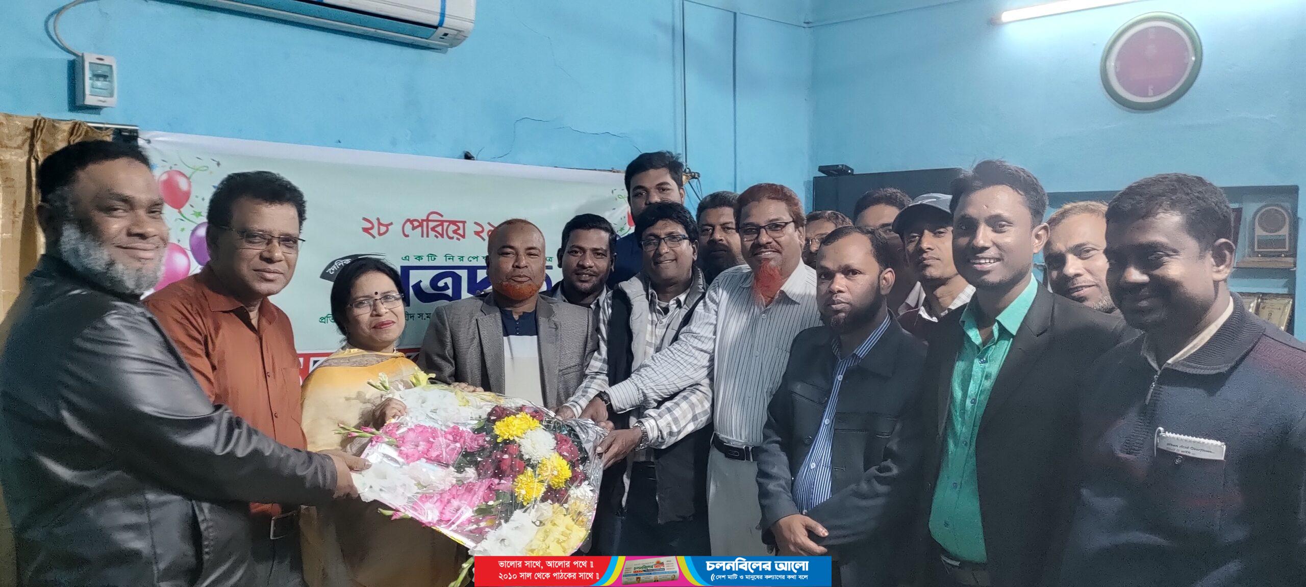সাতক্ষীরা জেলা জার্নালিস্ট এ্যাসোসিয়েশনের পক্ষ থেকে সাতক্ষীরার পাঠক প্রিয় দৈনিক পত্রদূত পত্রিকার প্রতিষ্ঠা বার্ষিকী উপলক্ষে পত্রিকার সম্পাদকদ্বয়কে ফুলেল শুভেচ্ছা প্রদান করা হয়েছে। মঙ্গলবার (২৪ জানুয়ারী) সন্ধ্যা ৭টায় পত্রদূত পত্রিকার নিজস্ব কার্যালয়ে পত্রিকার ভারপ্রাপ্ত সম্পাদক লাইলা পারভীন সেঁজুতি এবং উপদেষ্টা সম্পাদক এড. আবুল কালাম আজাদকে ফুল দিয়ে শুভেচ্ছা জানান এ্যাসোসিয়েশনের নেতৃবৃন্দ ।