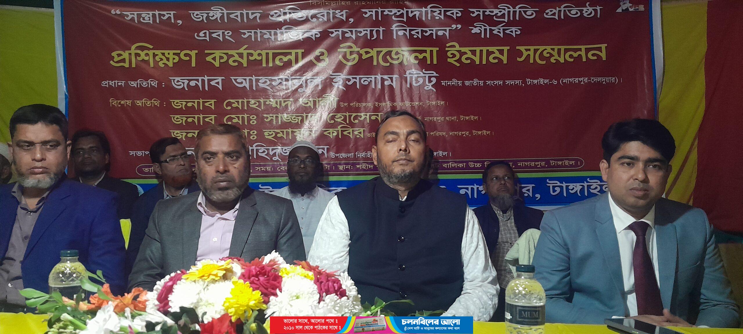 টাঙ্গাইলের নাগরপুরে “সন্ত্রাস, জঙ্গীবাদ প্রতিরোধ, সাম্প্রদায়িক প্রতিষ্ঠা এবং সামাজিক সমস্যা নিরসন” শীর্ষক প্রশিক্ষণ কর্মশালা ও উপজেলা ইমাম সম্মেলন অনুষ্ঠিত হয়েছে।