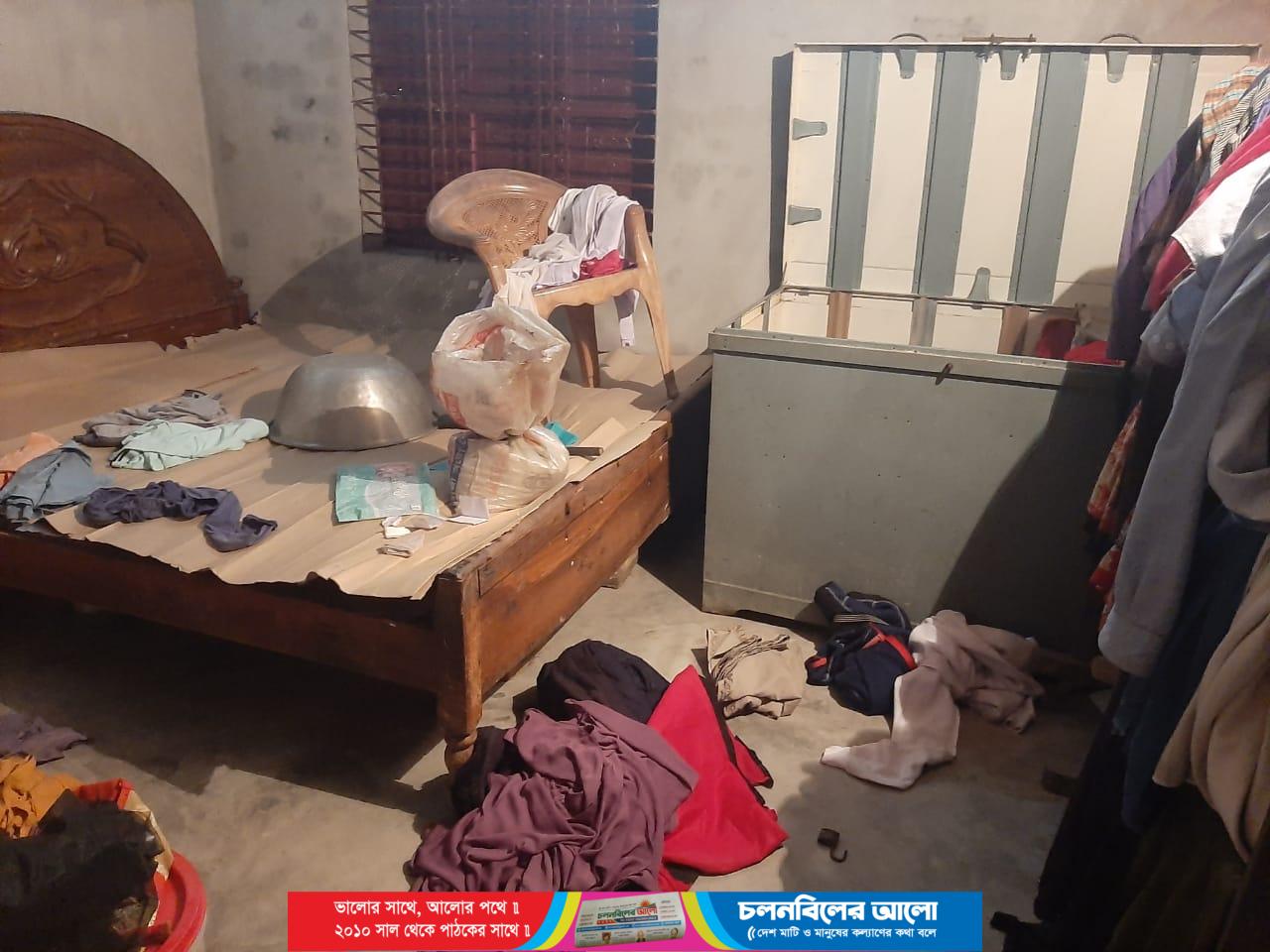 সাখাওয়াত হোসেন বলেন, সকালে আমি ও আমার স্ত্রী হাটতে বের হয়েছিলাম। বাড়িতে মেয়ে ঘুমিয়ে ছিল। মেয়ে পাশের ঘরে খটখট শব্দ শুনে গিয়ে দেখে আমার প্রতিবেশী শ্রীখন্ডী গ্রামের আজিজুর রহমানের ছেলে নাজমুল হোসেন (৩৫) স্টীটের বাক্সের তালা ভাঙ্গচুর করছে। আমার মেয়ে চিৎকার দিলে গলায় ছুড়ি ধরে স্বর্নের মালা, চুড়ি, কানের ঝুমকা ও নগদ ৫০ হাজার টাকা নিয়ে পালিয়ে যায়। পরে আমার চাচাত ভাইয়ে বউয়েরা এসে তাকে (আমার মেয়েকে) উদ্ধার করে।