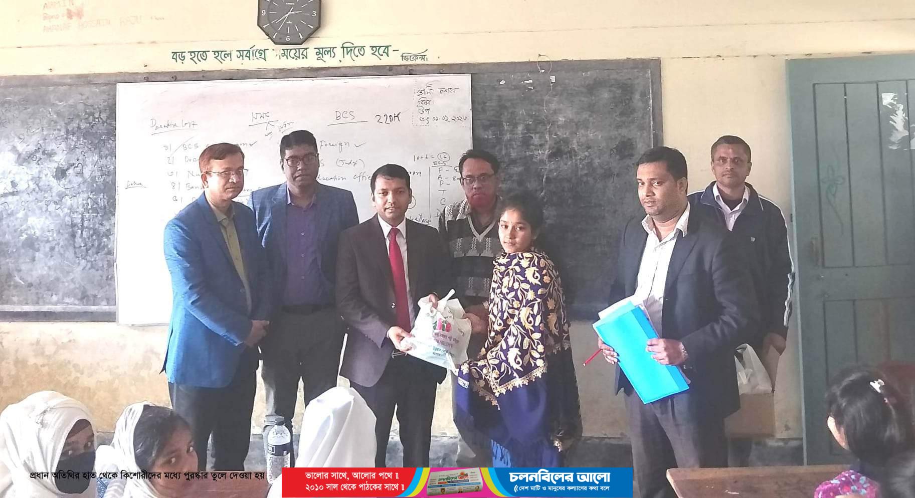 অভয়নগরে কিশোরীদের সচেতনতামূলক প্রশিক্ষণ অনিুষ্ঠিত হয়েছে। গতকাল বৃহস্পতিবার বেলা ১১ টায় হিদিয়া আহাদ নাজের হেলাল উদ্দীন মাধ্যমিক বিদ্যালয়ে উপজেলা পল্লী উন্নয়ন এর আওতায় দরিদ্র মহিলাদের জন্য সমন্বিত পল্লী উন্নয়ন কর্মসংস্থান সহয়তা প্রকল্প (ইরেসপো) ২য় পর্যায়ে কিশোরীদের সচেতনতামূলক প্রশিক্ষণ অনিুষ্ঠিত হয়। হিদিয়া আহাদ নাজের হেলাল উদ্দীন মাধ্যমিক বিদ্যালয়ে প্রধান শিক্ষক এস এম মিজানুর রহমান ব্শ্বিাসের সভাপতিত্বে অনুষ্ঠানে প্রধান অতিথি ছিলেন, উপজেলা নির্বাহী কর্মকর্তা মেজবাহ উদ্দীন। বিশেষ অতিথি ছিলেন, উপজেলা মাধ্যমিক শিক্ষা কর্মকর্তা শহিদুল ইসলাম ও নওয়াপাড়া প্রেস ক্লাবের সভাপতি নজরুল ইসলাম মল্লিক, উপজেলা পল্লী উন্নয়ন অফিসার মেহেদী হাসান । এসময় অন্যান্যের মধ্যে উপস্থিত ছিলেন নওয়াপাড়া প্রেস ক্লাবের যুগ্ম সাধারণ সম্পাদক সৈয়দ মাসুদ তাজ, দফতর সম্পাদক শাহিন আহমেদ, সদস্য তাওহীদ আল হাসান, শ্রৈণী শিক্ষক সাইফুল আলমসহ শিক্ষক মন্ডলী। অনুষ্ঠান সঞ্চলনা করেন মো. শরিফুল ইসলাম। এসময় কিশোরীদের সচেতনতামূলক প্রশিক্ষণ প্রদান করেন উপজেলা নির্বাহী কর্মকর্তা মেজবাহ উদ্দীন। পরে প্রধান অতিথির হাত থেকে কিশোরীদের মধ্যে পুরষ্কার তুলে দেওয়া হয়।
