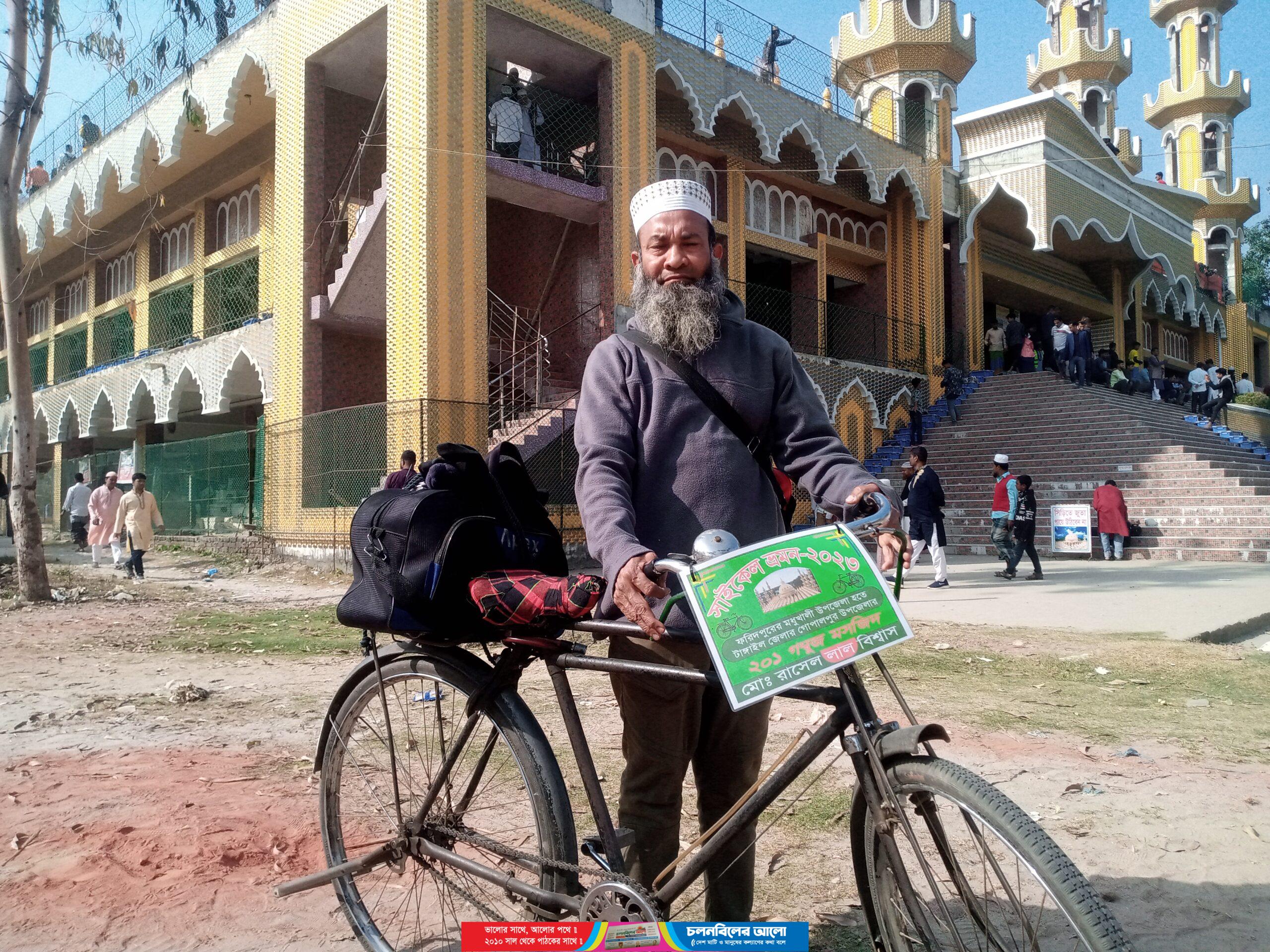 বাসে আসলে আশপাশে পরিবেশ দেখা যাবে না ভেবো সাইকেল নিয়ে আসার সিদ্ধান্ত নেন তিনি। এ বিষয়টি পরিবারের সদস্যদের সঙ্গে আলোচনা করলে তার স্ত্রী ও দুই সন্তানও সাইকেল নিয়ে আসতে উৎসাহিত করেন। সেই উৎসাহ থেকে প্রায় ১৮০ কিলোমিটার পথ সাইকেল চালিয়ে মসজিদে আসতে সক্ষম হন।