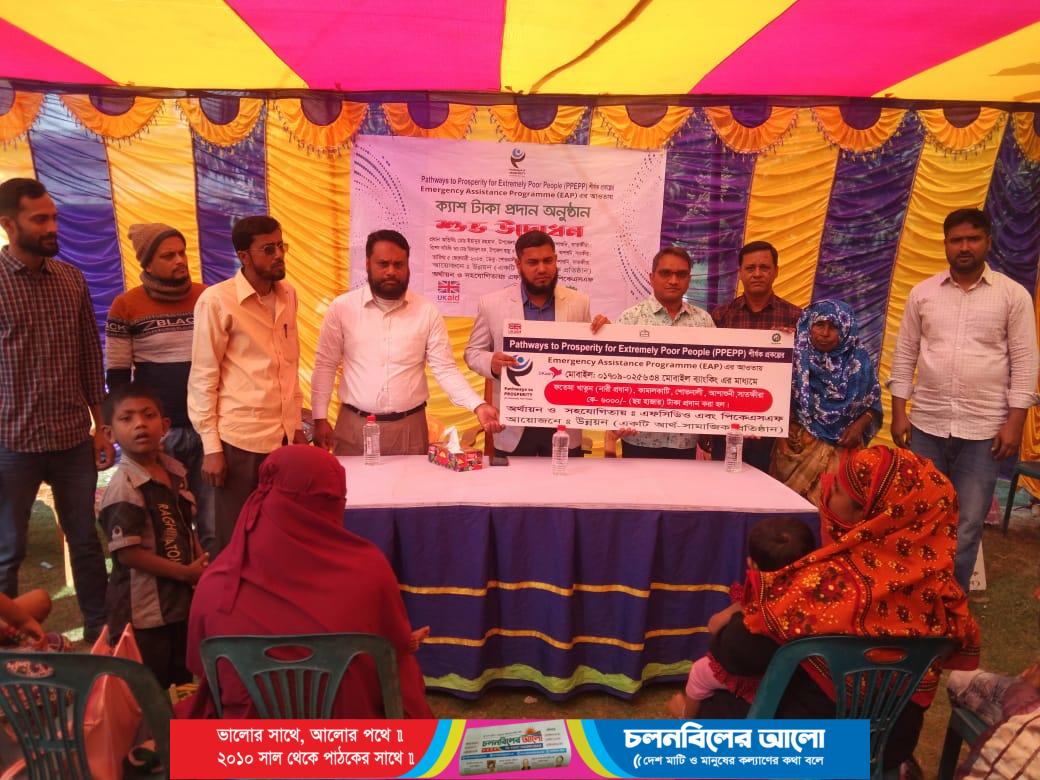 প্রস্পারেটি প্রকল্প এফ,সি,ডিও এর অর্থায়নে উন্নয়ন সংস্থা কর্তৃক আয়োজিত আজ রবিবার পি,কে এস,দের অর্থায়নে এবং উন্নয়ন এনজিও কর্তৃক বাদ্য বায়িত ই,এ,পি (ইমারজেন্সি অ্যাসিস্ট্যান্ট প্রোগ্রামের) আওতায় নগদ ৬০০০ (ছয় হাজার টাকা) করে প্রতি সদস্যকে মোট ৬৮০ জন কে ৪০,৮০০০০ (চল্লিশ লক্ষ আশি হাজার) টাকা প্রদান করা হয়। এবং সেই সাথে পুষ্টি কম্পোনেন্টের আওতায় পুষ্টি সমৃদ্ধ খাবারের উপকরণ বাবদ ২৫০০ (দুই হাজার পাঁচশত) টাকার সমমূল্যের ৭০ জন সদস্যকে এক লক্ষ ৭৫ হাজার টাকার খাদ্যপণ্য বিতরণ করা হয়। বিতরণকালে উপস্থিত ছিলেন আশাশুনি উপজেলার উপজেলা নির্বাহী অফিসার ইয়ানুর রহমান। এবং আরও উপস্থিত ছিলেন শোভনালী ইউনিয়ন পরিষদের চেয়ারম্যান আলহাজ্ব মাওলানা আবু বক্কর সিদ্দিক, ইউপি সদস্য আব্দুল হান্নান, উন্নয়ন সংস্থার কর্মকর্তাগণ এর মধ্যে উপস্থিত ছিলেন জনাব মোঃ মনিরুল ইসলাম। (শাখা ব্যবস্থাপক) এবং আরো উপস্থিত ছিলেন জনাব মুন্সি মোঃ কুতুব উদ্দিন। (টেকনিক্যাল অফিসার)জীবিকায়ন ও জনাব মোঃ সাইদুর রহমান (টেকনিক্যাল অফিসার পুষ্টি কম্পোনেন্ট) এছাড়া এলাকার অন্যান্য গণ্যমান্য ব্যক্তি উপস্থিত ছিলেন।