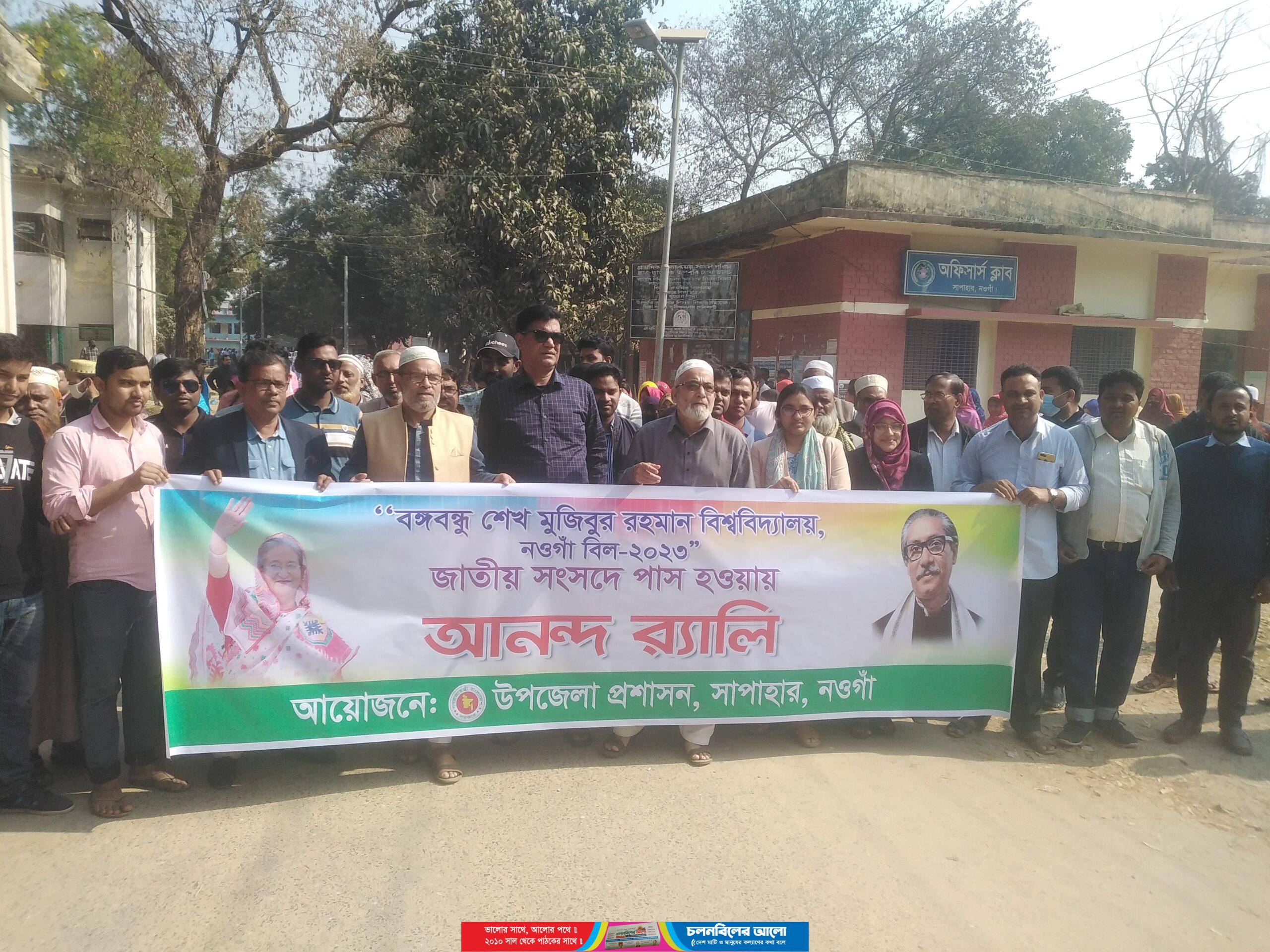 ‘বঙ্গবন্ধু শেখ মুজিবুর রহমান বিশ্ববিদ্যালয়’ নওগাঁ চূড়ান্ত বিল জাতীয় সংসদে পাস হওয়ায় সাপাহারে আনন্দ র্যালি অনুষ্ঠিত হয়েছে।