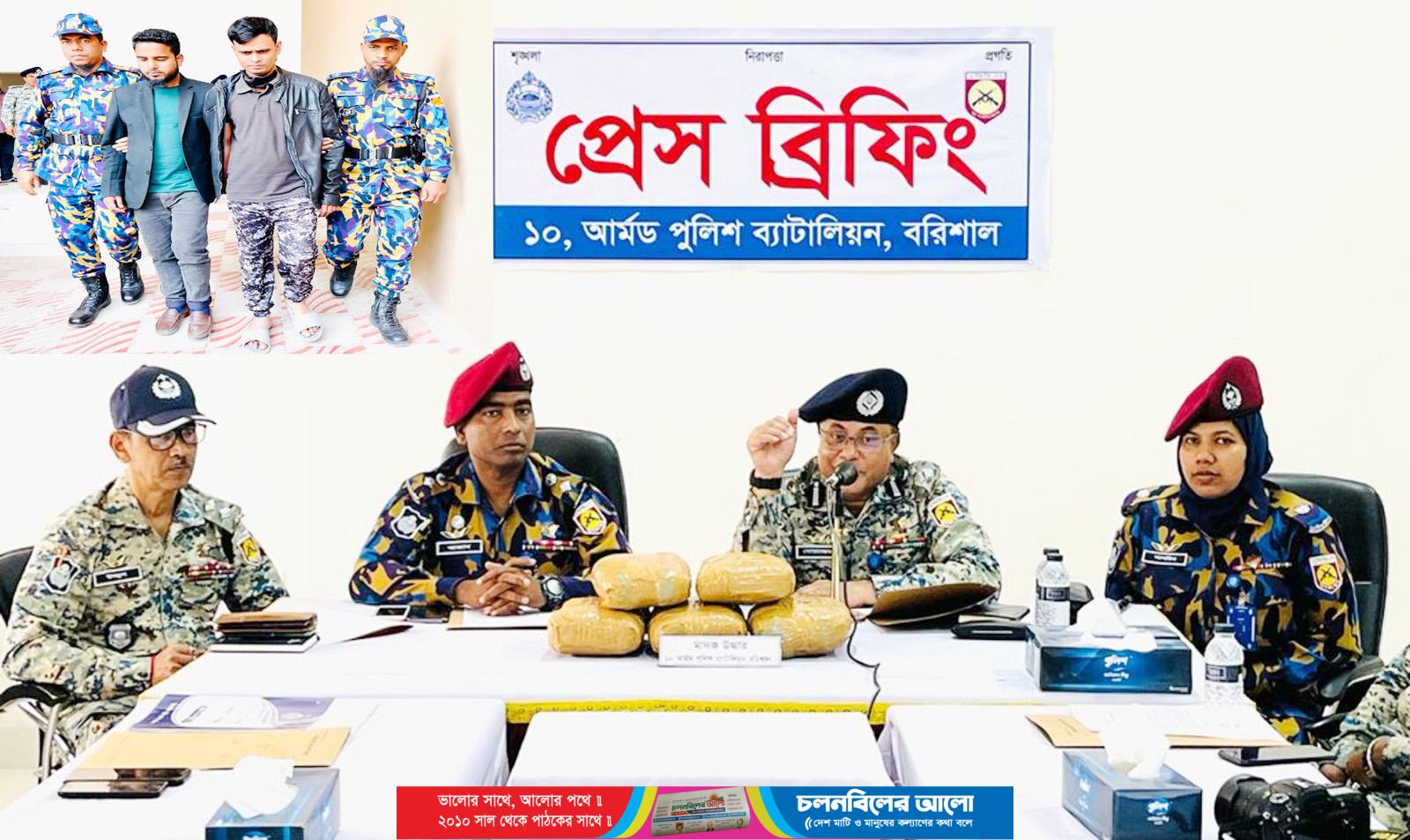 পাঁচ কেজি গাঁজা ও প্রাইভেটকারসহ দুই মাদক ব্যবসায়ীকে আটক করেছে বরিশাল ১০ আর্মড পুলিশ ব্যাটালিয়নের সদস্যরা।