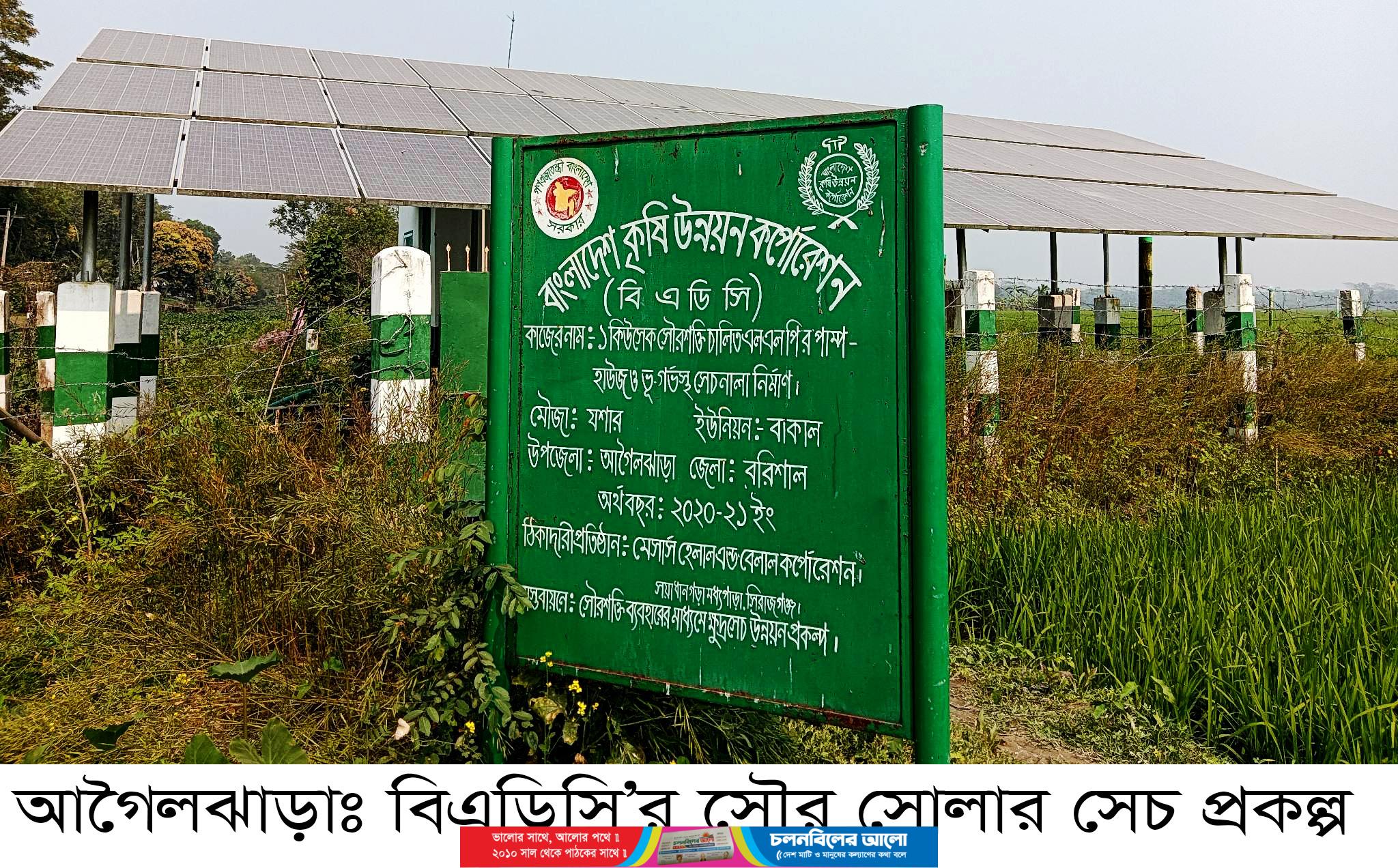 কৃষি নির্ভর বরিশাল জেলার আগৈলঝাড়া উপজেলায় কৃষি সম্প্রসারণ অধিদপ্তরের আওতায় একটি এবং বাংলাদেশ কৃষি উন্নয়ন কর্পোরেশন (বিএডিসি’র) আওতায় একটি সৌর সোলার সেচ চালিত পাম্পসহ মোট দুটি পাম্প এর মাধ্যমে দুটি ইরি-বোরো ব্লকের ৫০ একরের অধিক জমিতে অর্ধেক খরচে চাষাবাদ করতে পেরে উপকৃত হচ্ছেন শতাধিক কৃষক পরিবার।