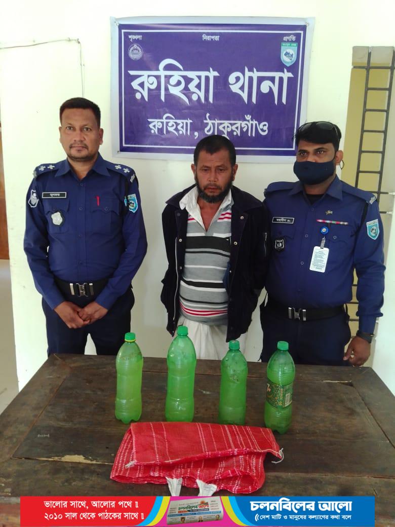 ঠাকুরগাঁও সদর উপজেলার রুহিয়ায় চার লিটার চোলাইমদসহ খাসিরুল ইসলাম(৪৫) নামে একজনকে আটক করেছে পুলিশ।