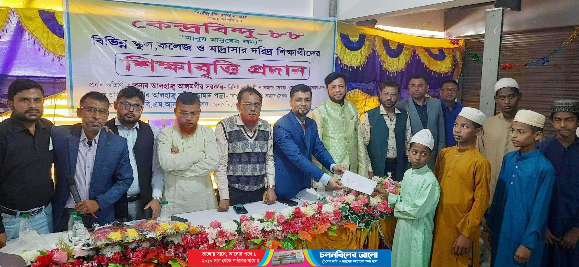 যশোরের অভয়নগরে বিভিন্ন স্কুল, কলেজ ও মাদরাসার ১০৪ জন গরিব মেধাবী শিক্ষার্থীকে শিক্ষাবৃত্তি প্রদান করা হয়েছে। কেন্দ্রবিন্দু-৮৮ নামের একটি স্বেচ্ছাসেবী সংগঠনের পক্ষ থেকে এ শিক্ষাবৃত্তি প্রদান করা হয়েছে। ‘মানুষ মানুষের জন্য’ এই শ্লোগানে গতকাল শনিবার দুপুরে নওয়াপাড়া বাসস্ট্যান্ট সংলগ্ন সাগরিকা শপিং মলের দ্বিতীয় তলায় শিক্ষাবৃত্তি প্রদান উপলক্ষে আলোচনা সভার আয়োজন করা হয়। কেন্দ্রবিন্দু-৮৮ এর সভাপতি ও অভয়নগর উপজেলা স্বেচ্ছাসেবকলীগের সভাপতি আসলাম হোসেন বিশ্বাসের সভাপতিত্বে অনুষ্ঠানে প্রধান অতিথি ছিলেন, বিশিষ্ট সমাজসেবক ও সরকার গ্রæপের চেয়ারম্যান আলহাজ্ব আলমগীর সরকার। অতিথি হিসেবে উপস্থিত ছিলেন, নওয়াপাড়া প্রেসক্লাবের সভাপতি নজরুল ইসলাম মল্লিক, পল্লী মঙ্গল আদর্শ কলেজের অধ্যক্ষ খায়রুল বাসার, কেন্দ্রবিন্দু-৮৮ এর সহ-সভাপতি আবু জাফর সরদার, যুগ্ম সম্পাদক কৃষিবিদ শ্যামল পাল, সাংগঠনিক সম্পাদক আহসানুজ্জামান রাজা, প্রচার সম্পাদক নিতিশ রঞ্জন সাহা, সদস্য মারুফ হোসেন, এনামুল কবীর বুলবুল, আব্দুস সালাম, শাহিনুল ইসলাম ও দেবানন্দ চক্রবর্তী। অনুষ্ঠান যৌথভাবে সঞ্চালনা করেন, কেন্দ্রবিন্দু-৮৮ এর সাধারণ সম্পাদক মশিউল আলম পিন্টু ও সাবেক সাধারণ সম্পাদক জাহিদুল ইসলাম জাহিদ।এ ব্যাপারে সভাপতি আসলাম হোসেন বিশ্বাস জানান, ২২টি শিক্ষাপ্রতিষ্ঠানের ১০২ জন শিক্ষার্থীকে নগদ এক লাখ দুই হাজার টাকা শিক্ষাবৃত্তি ও ২ জন অসুস্থ শিক্ষার্থীকে চিকিৎসা সহায়তা প্রদান করা হয়েছে। অভয়নগরে ১৯৮৮ সালের এসএসসি ব্যাচের ৪০জন বন্ধুর সমন্বয়ে কেন্দ্রবিন্দু-৮৮ নামের এ সংগঠনি পরিচালিত হয়ে আসছে। মানুষ, সমাজ ও রাষ্ট্রের কল্যাণে কাজ করাই এ সংগঠনের মূলমন্ত্র।