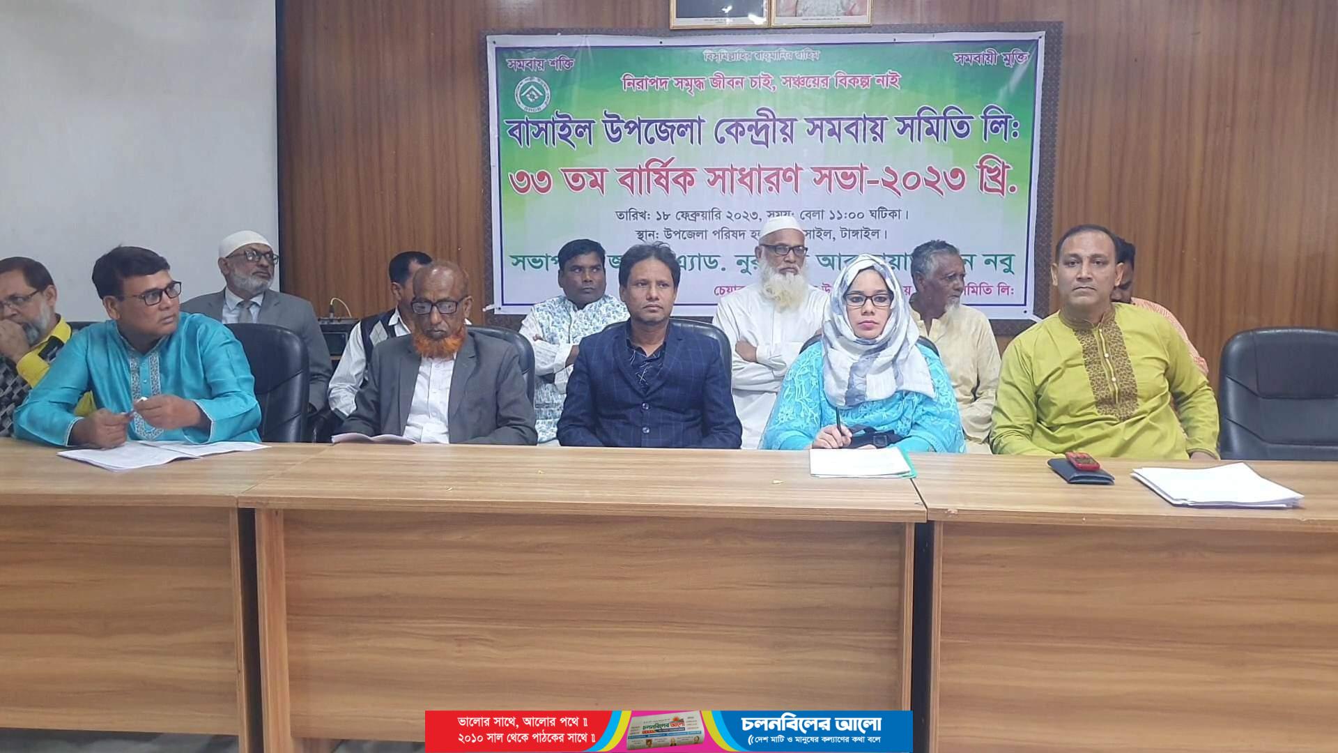 টাঙ্গাইলের বাসাইল উপজেলা কেন্দ্রীয়  সমবায় সমিতি লিমিটেডের ৩৩তম বার্ষিক সাধারণ সভা অনুষ্ঠিত হয়েছে।
