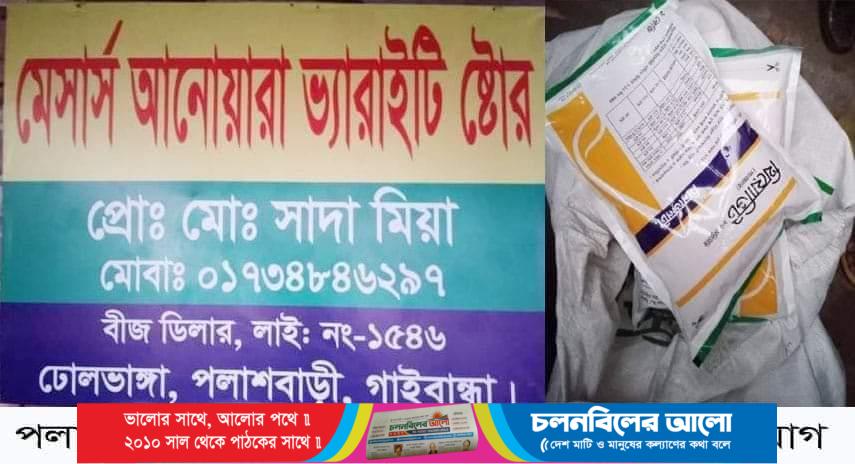 সরেজমিনে গিয়ে জানা যায়, গাইবান্ধার পলাশবাড়ী উপজেলার ঢোলভাঙ্গা বাসস্ট্যান্ড সংলগ্ন আনোয়ারা ভ্যারাইটি ষ্টোরের স্বত্বাধিকারী সাদা মিয়া প্রায় ১০বছর ধরে সার ও কীটনাশক ঔষধ বিক্রি করে আসছে। যার বীজ ডিলার লাইসেন্স নং- ১৫৪৬। ১৮ ফেব্রুয়ারী বিকালে তার ব্যবসা প্রতিষ্ঠানে সিনজেনটা কোম্পানির থিয়োভিট ও গ্রোজিন বিক্রিকালীন সময় সিনজেনটা কোম্পানির দায়িত্বপ্রাপ্ত সেলস প্রমোশন অফিসার মিজানুর রহমান নকল পণ্য আটক করে এবং সংশ্লিষ্ট কৃষি অফিস ও থানা পুলিশকে অবগত করলে থানা পুলিশ ঘটনাস্থল পরিদর্শন করেন। এসময় সার ও কীটনাশক ব্যবসায়ী দোকান বন্ধ করে গা ঢাকা দিয়েছে ।